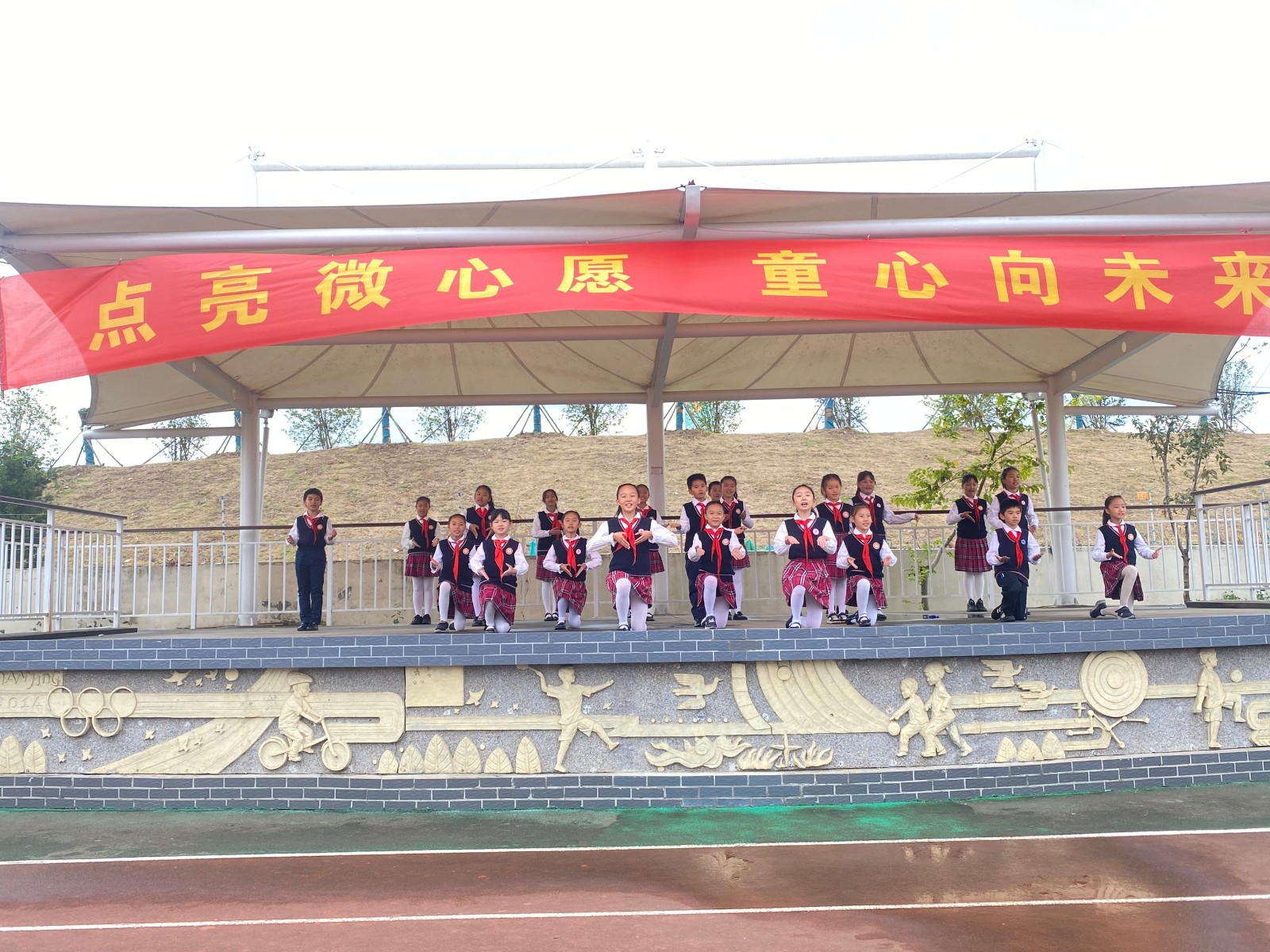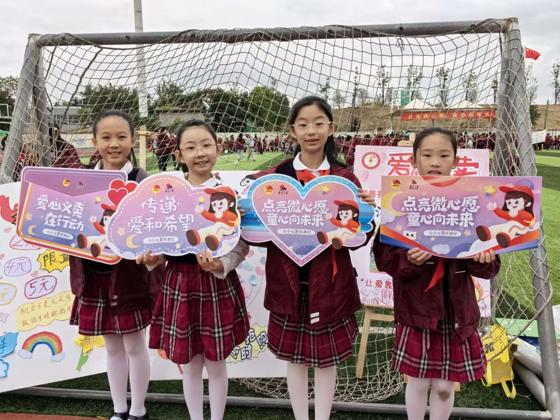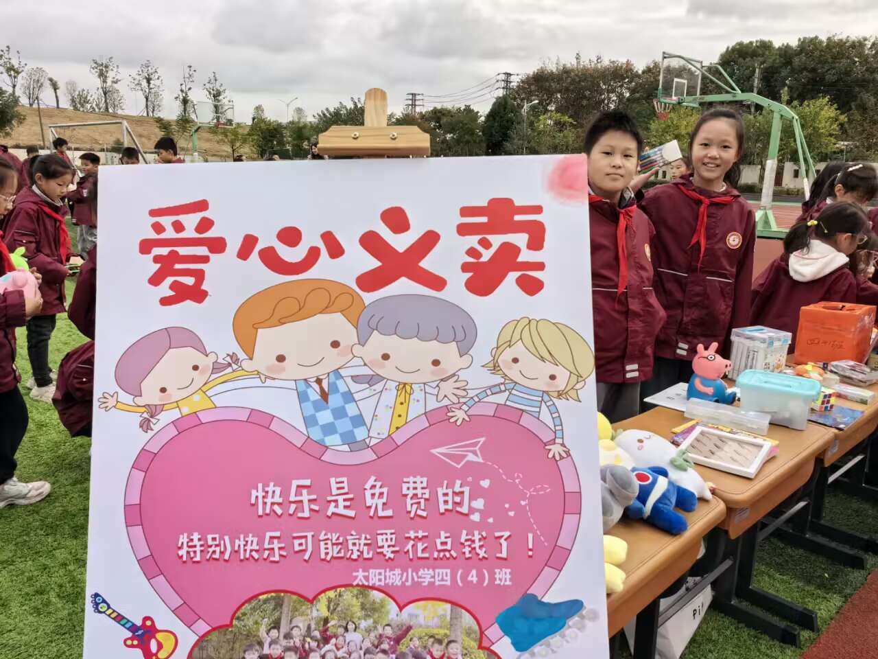 一滴水能反射出太阳的光辉,一份爱足以体现人间的温暖。点滴善意汇聚成爱的海洋,丝缕温暖编织成梦的翅膀。2023年11月10日,在这飒爽的金秋时节,太阳城小学全体师生相聚在操场上,共同参与本次“点亮微心愿,童心向未来”爱心义卖活动。