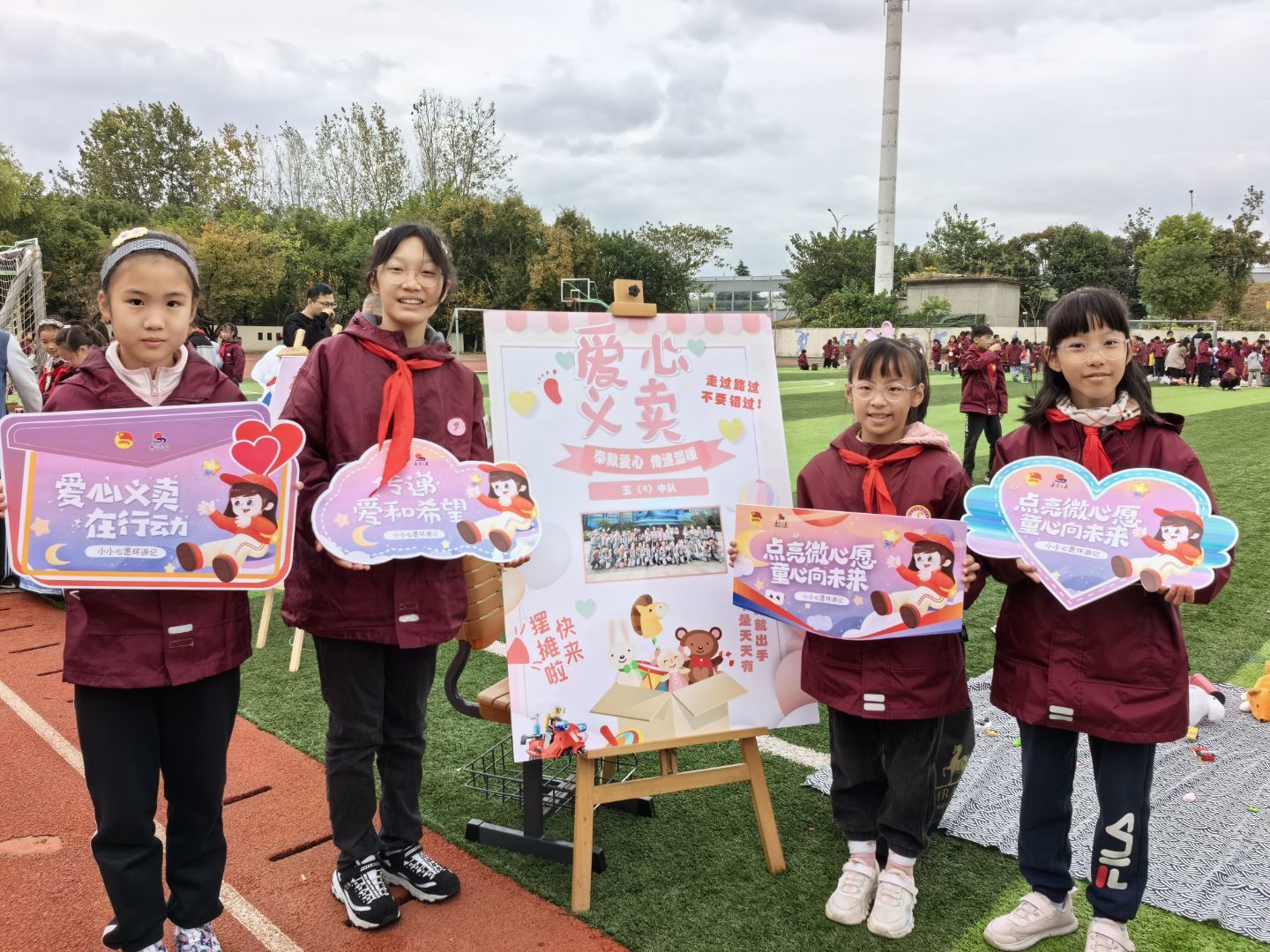 在活动前期,各班精心制作了班级宣传海报、募捐箱等物品,家长们、少先队员们纷纷准备家里各式闲置的物品准备义卖,希望能够靠自己的力量给需要帮助的人送去一份温暖,让那些困境中的人生活多一些幸福感。