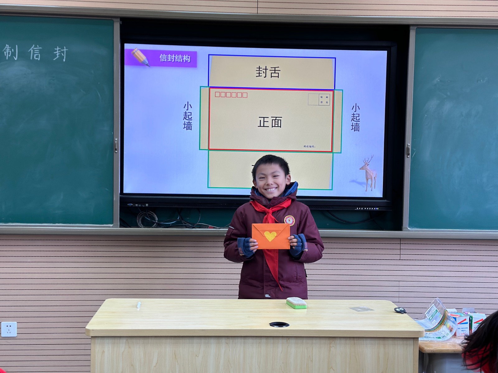 在展示环节,同学们通过自评、互评分享了自制信封的经验和乐趣,同时也接受了宝贵的意见。这节课不仅让孩子们充分感受到劳动带来的快乐,而且也在劳动的过程中提升了手工制作的劳动技能。