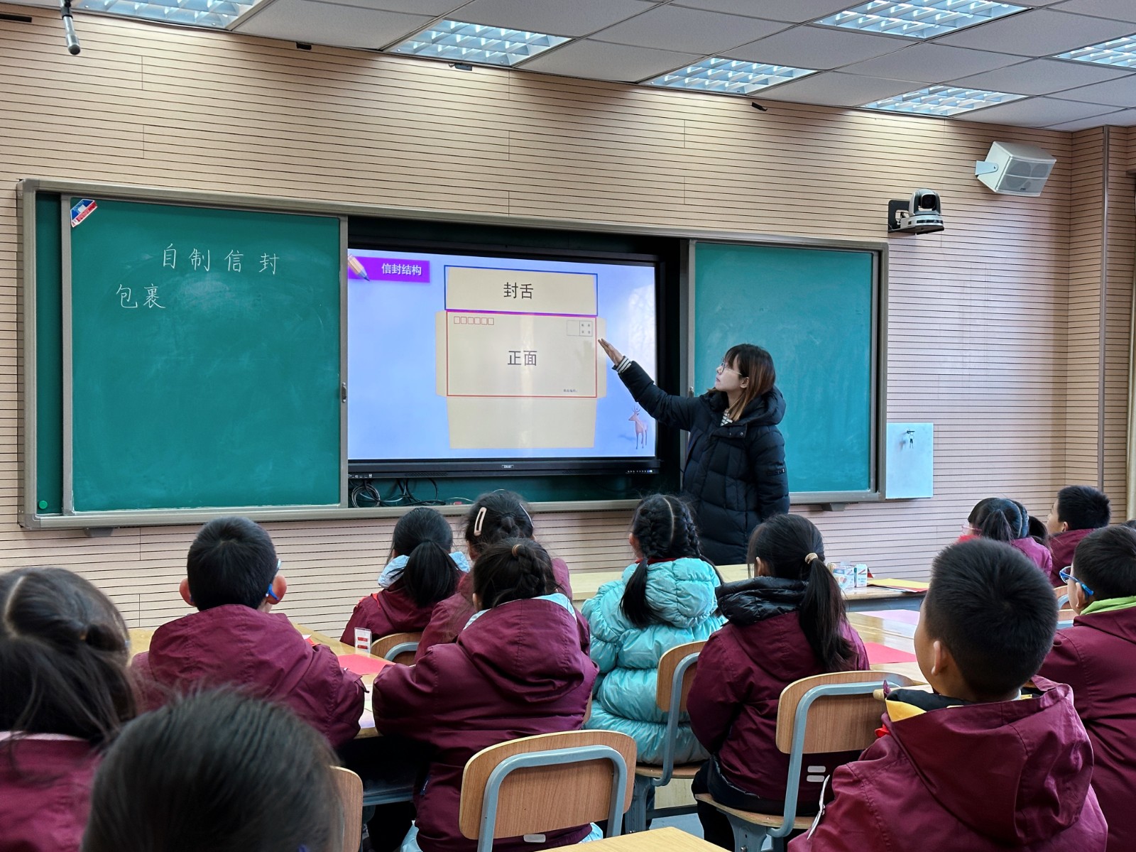 胡老师以“信封的历史演变”导入,从“认识信封结构”“学习制作信封”“装饰美化信封”三个任务出发,层层递进,分步指导学生制作精致美观的信封。