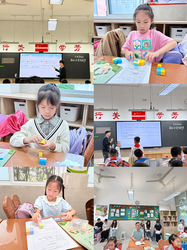 张亦杰老师在二(2)班执教数学研讨课《平均分(2)》。课程通过“分橡果”情境和多元操作活动,引导学生理解平均分概念。课后研讨肯定了情境教学,利用多元活动让学生充分体验,教学过程由扶到放,层次清晰,运用信息技术赋能课堂教学,对板书进行设计工整美观。张校指出要重视新授部分的充分讲解,组织学生有序汇报、调整展示顺序,帮助学生发现规律;同时强化本节课重点,细致回顾“指定份数”与“每份几个”的区别,明确新授操作、练习迁移内推与学生能力培养的关联。以及补充练习部分,强化对比练习,帮助学生巩固知识;关注教学节奏,避免过渡急促;深入挖掘教材内容的逻辑关系,在教学中渗透数学思想方法,培养学生的思维能力。。
