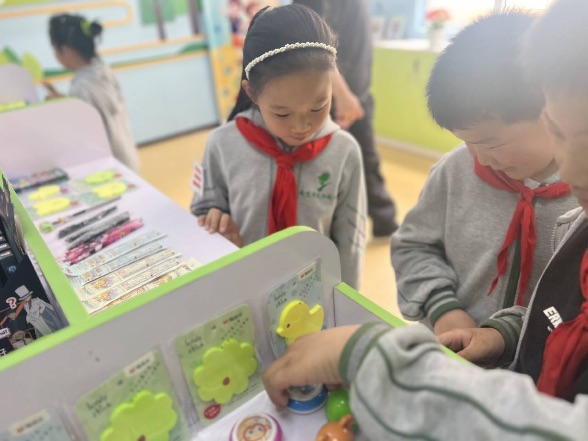 看着展柜上琳琅满目的奖品,大家都挑花了眼。有的挑选了充满惊喜的盲盒笔,还有的选了精美的文具盒,更多的同学选择抽奖。同学们都兑换到了自己心仪的奖品,刘老师用相机记录下了他们喜悦的笑容,每位同学都心满意足的带着自己的奖品回到了班级。