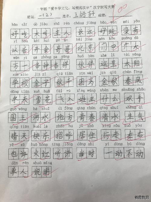 见字如面,一个人的字藏着一个人的情感、带着一个人的气质,字里行间凝聚一个人的品德与精魂。希望这次默写比赛,能唤起孩子们对汉字书写的浓厚兴趣,培养他们严谨认真的学习态度,让学生从小在心里树立一种“端端正正写字,堂堂正正做人”的信念。