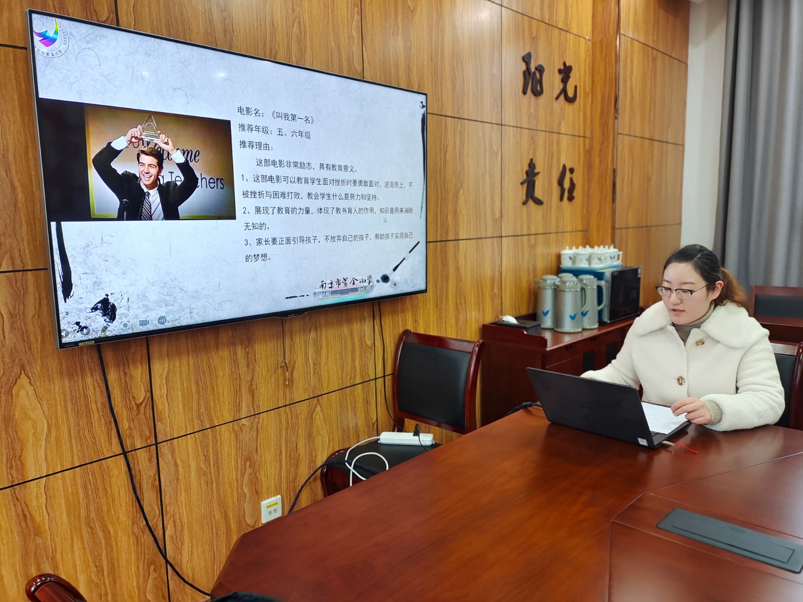 3月1日下午,紫金小学全体教师齐聚会议室,在王芳校长的带领下,开始了本学期的“师说讲坛”。本学期“师说讲坛”与学校的“光影童行”亲子课程紧密结合,全校教师共同参与,进行教育影片分享交流。