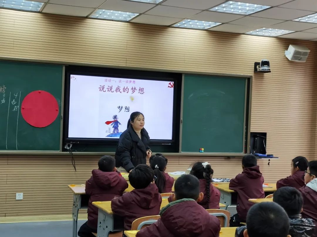 活动简介:为进一步落实立德树人的根本任务,充分发挥课堂教学育人的主渠道、主阵地作用,有效落实《习近平新时代中国特色社会主义思想学生读本》的铸魂育人功能,2022年11月30日,太阳城小学孙玮倩老师围绕校本主题“新课标下小学道德与法治课金融素养教育案例研究”,开设了一节小学低年级的读本研修课——《我们的中国梦》。孙老师前后多次试上,并与其他老师进行研讨、磨课,才有了精彩纷呈的课堂。