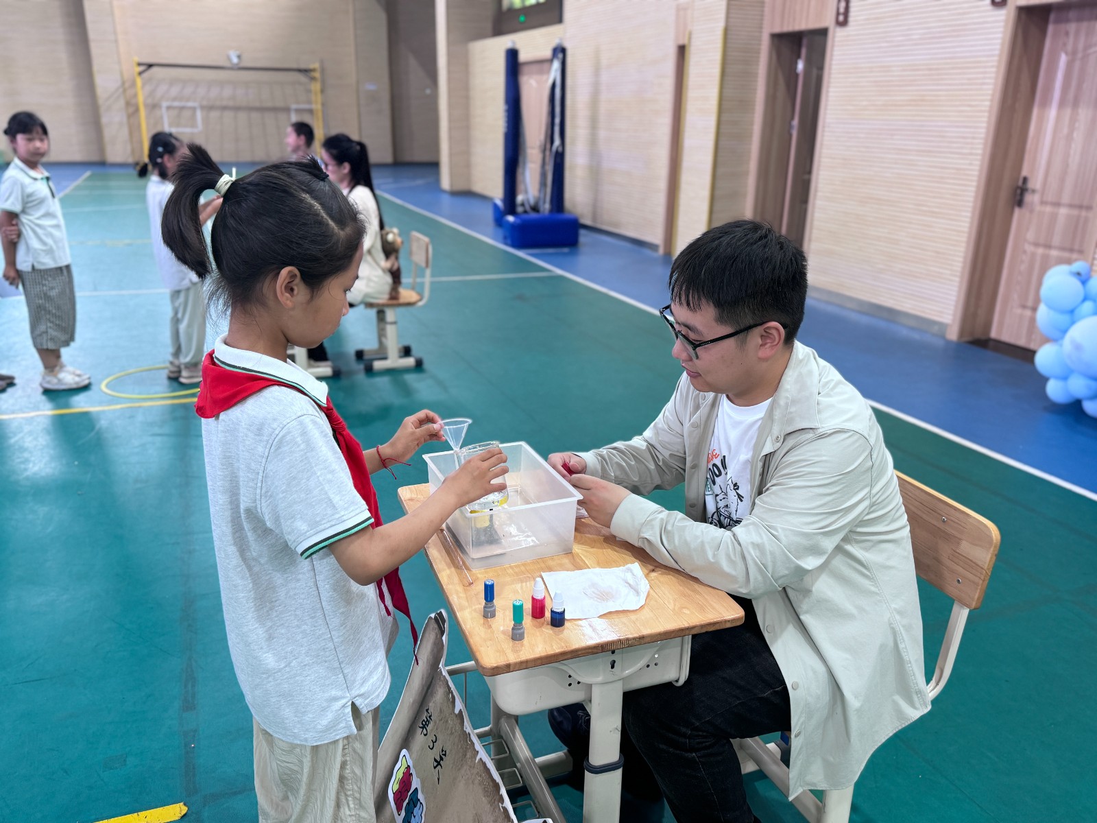 窗外的树木苍翠茂盛,夏日的阳光像一个个调皮的小精灵在树梢跳舞,紫金小学的体育馆里热闹非凡,一场别开生面的一二年级无纸化测评游园会——“夏日奇幻大冒险”正在欢乐举行。