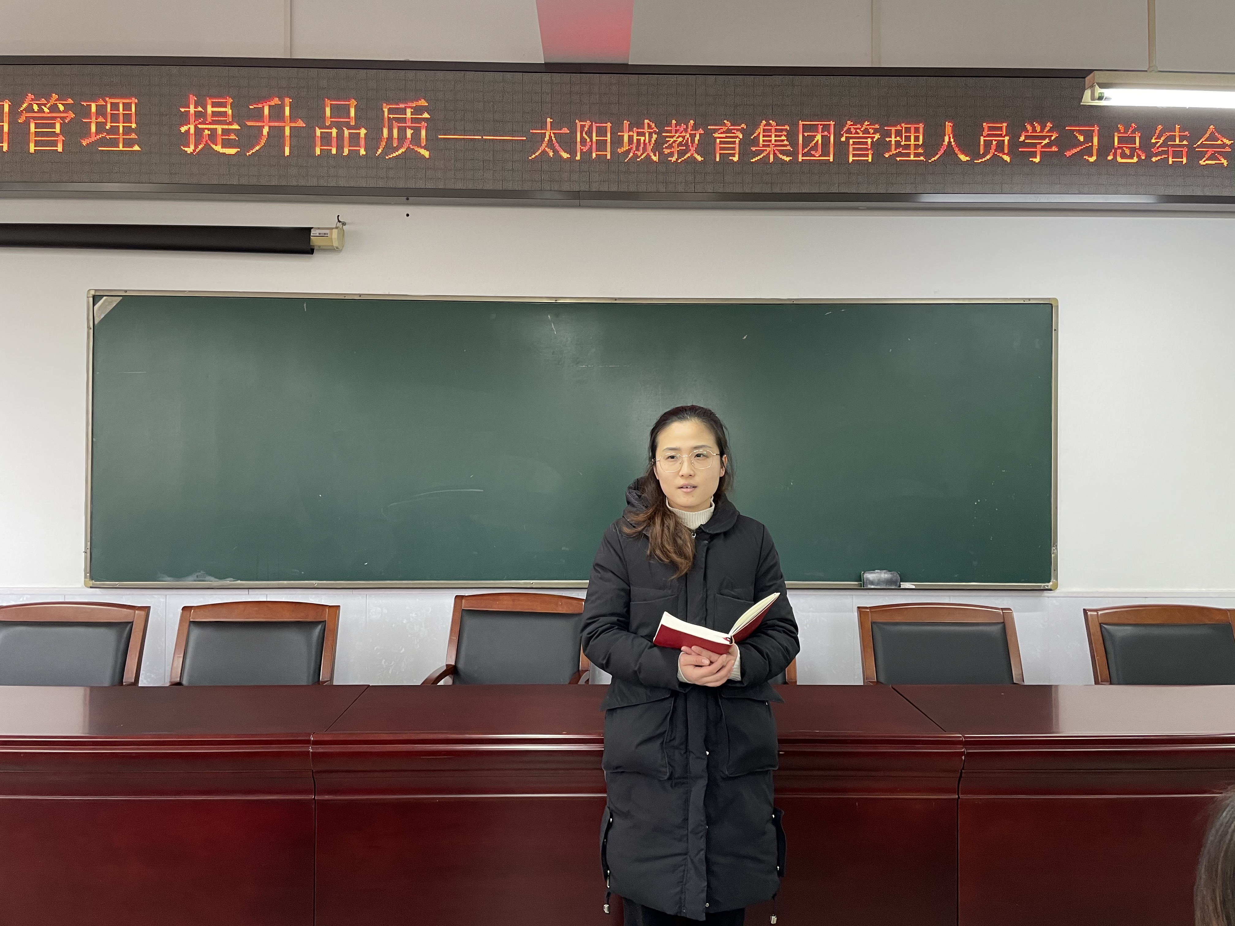 此次太阳城教育集团管理人员学习总结会,凝聚了人心,明确了工作重点,为下学期教育教学工作有序开展奠定了扎实的基础!