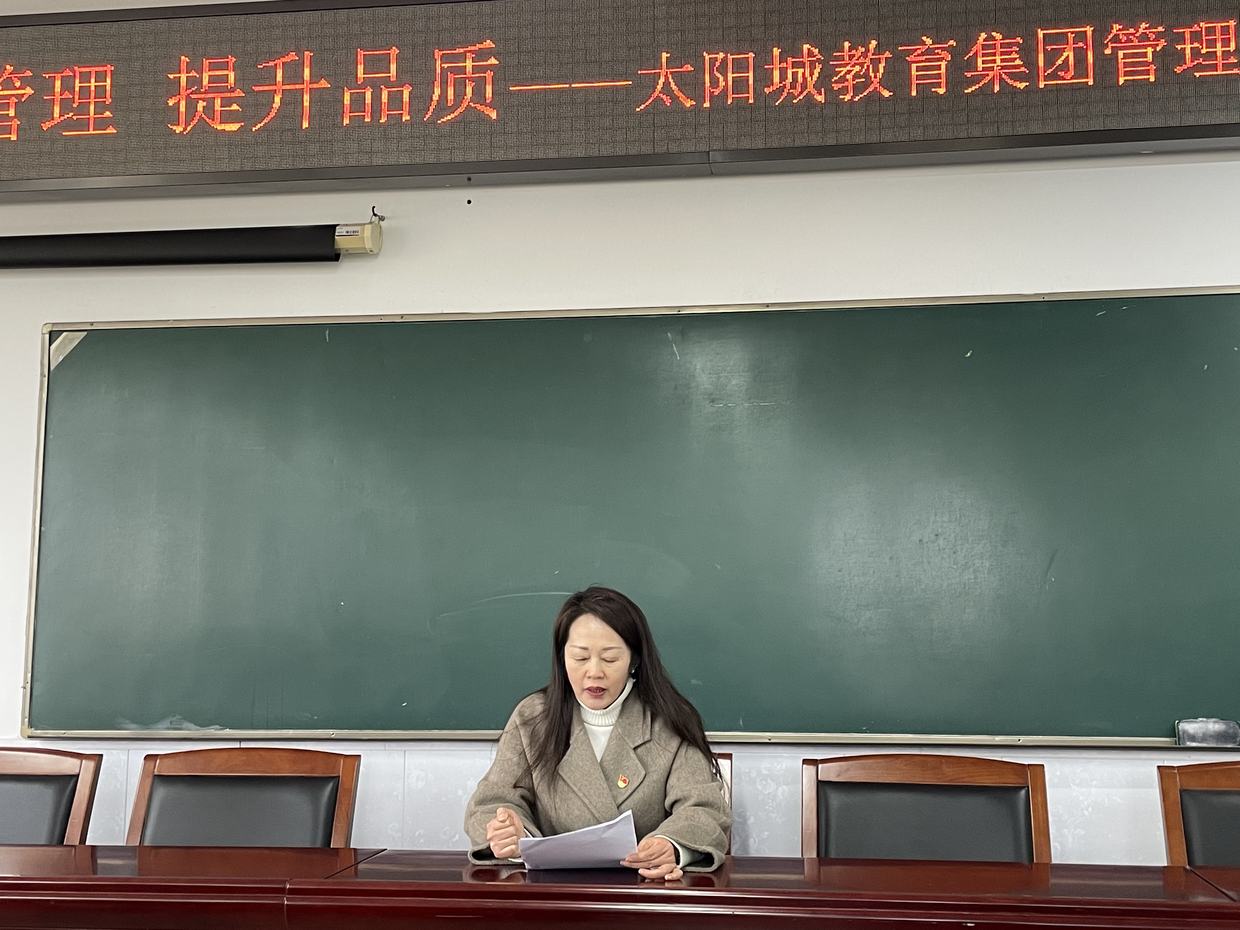 1月27日下午,太阳城教育集团管理人员学习总结会顺利召开,集团全体管理人员参加。本次会议主题为“精细管理 提升品质”,由太阳城小学教育集团李玲校长主持。