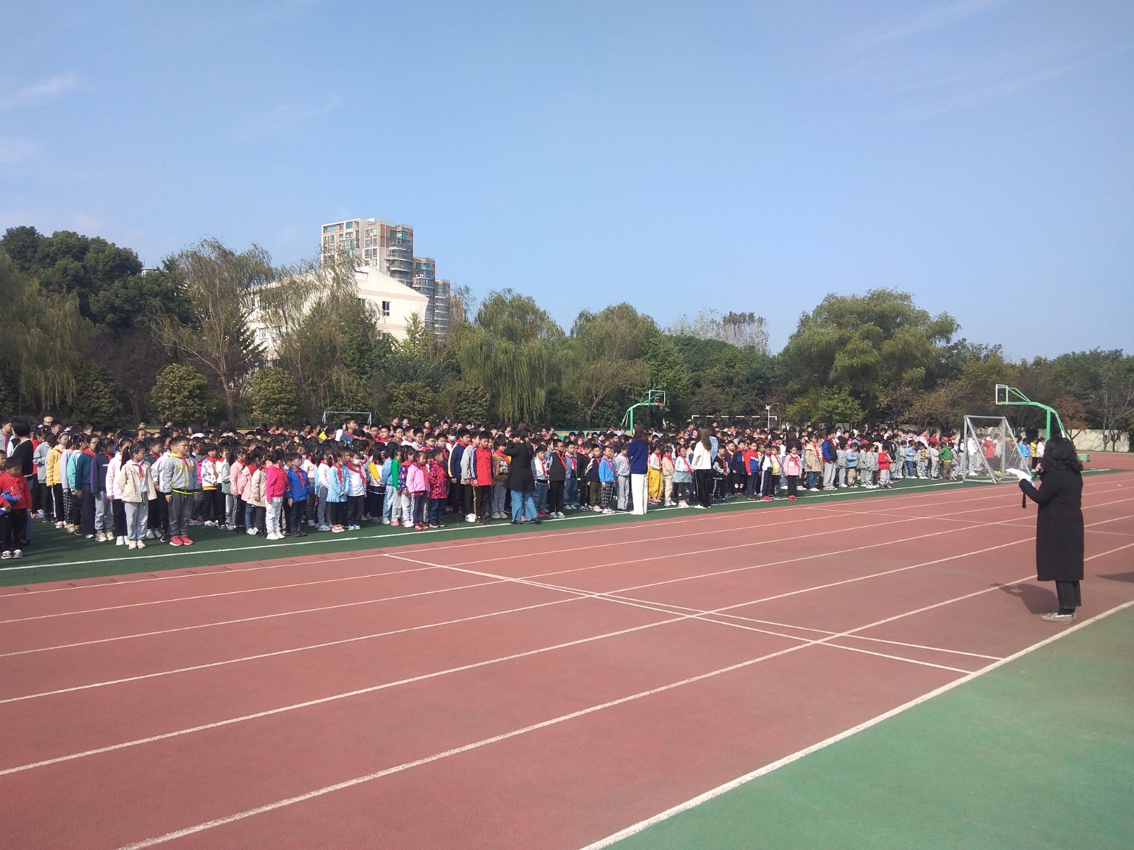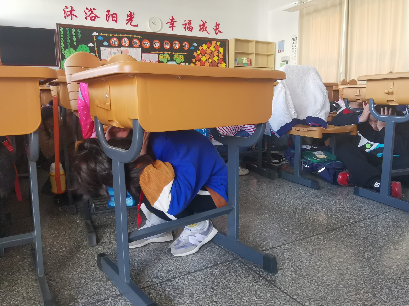 10月26日上午10点,南京市太阳城小学全体师生进行一次防震疏散演练。经校长室、总务处的精心组织,周密安排,各层楼梯和走廊负责的老师以最快的速度到达所在的岗位,并按照各岗位的职责积极组织学生疏散工作,本次演练总共用时4分05秒,基本符合要求。