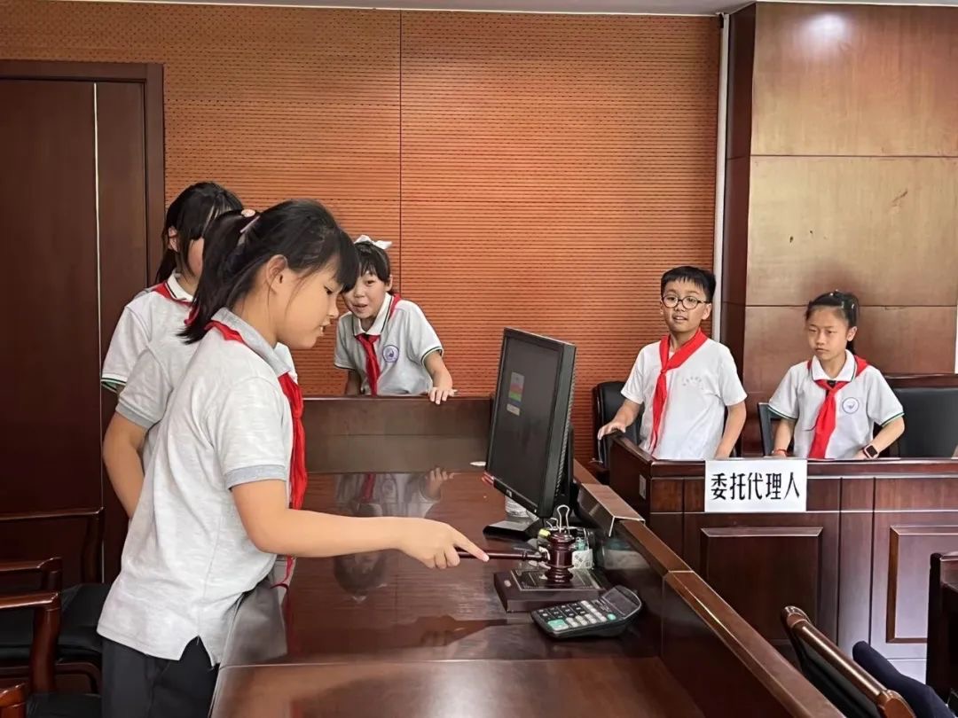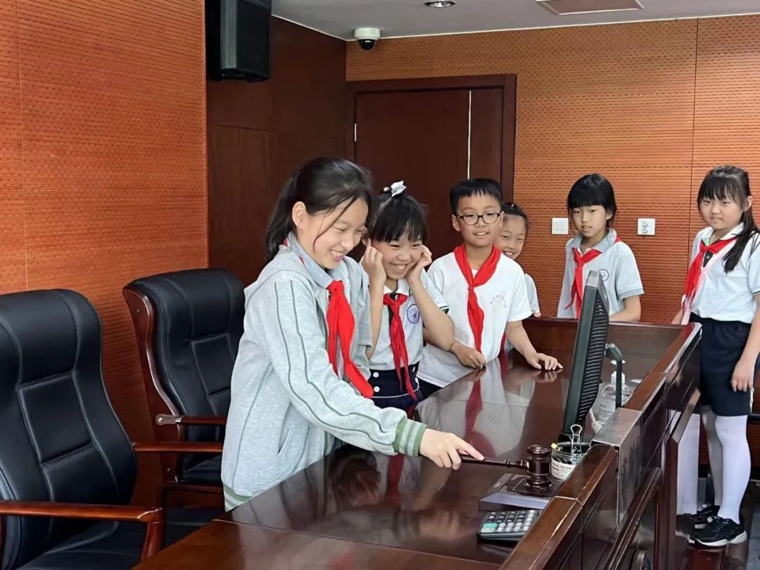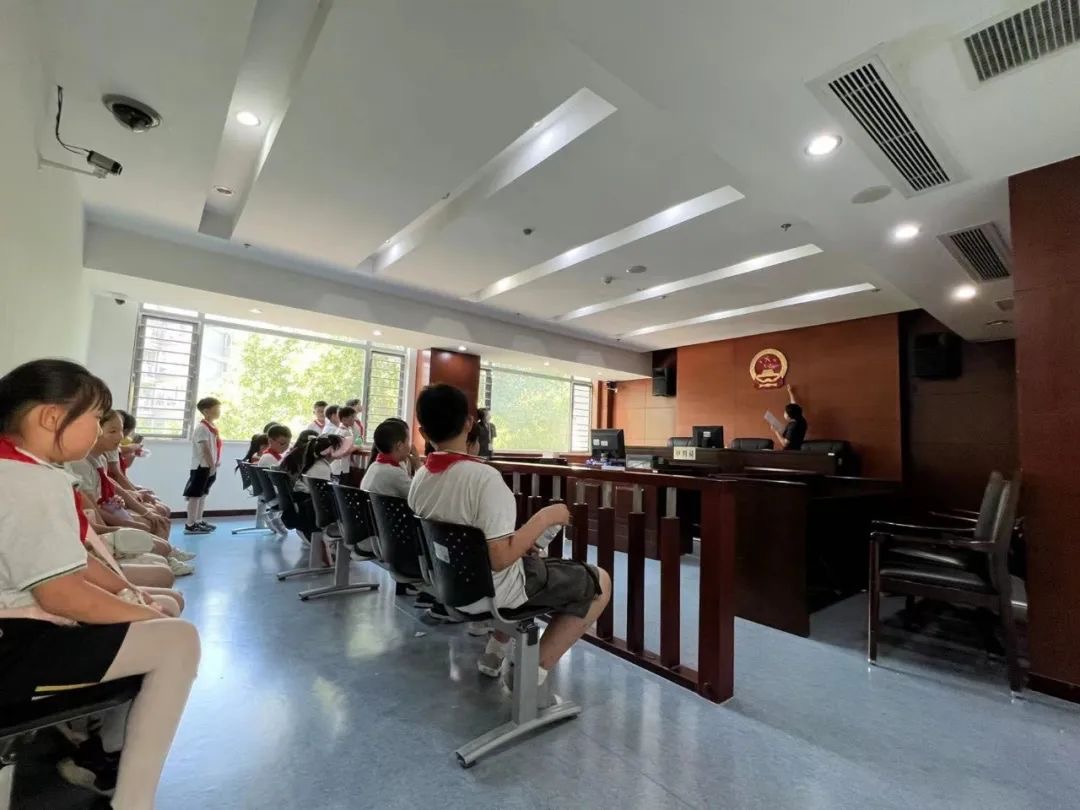 为了增强学生的法律意识,引导学生认识到知法、学法、懂法、用法的重要性,2023年6月9日,南京市紫金小学四(1)班的少先队员来到栖霞区人民法院进行参观。