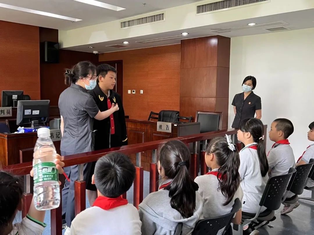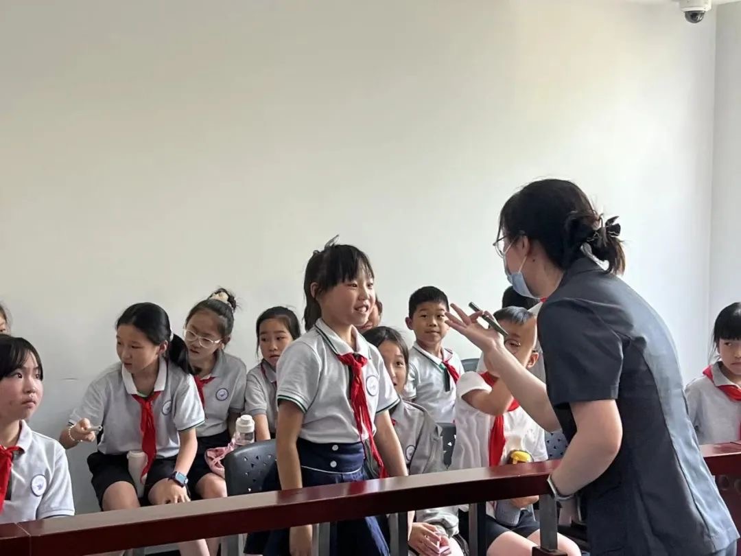 法官向少先队员们介绍了法院的法治理念,讲解有关公平公正、司法为民的故事。讲解员向小队员们普及法律小知识,大家积极回答赢得小奖品,司法警察的严肃着装也让孩子们体会到法院的庄严与肃穆。