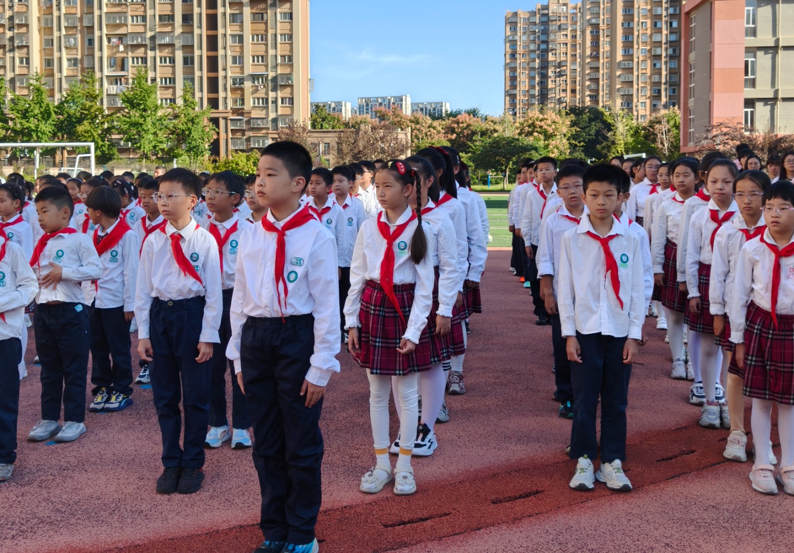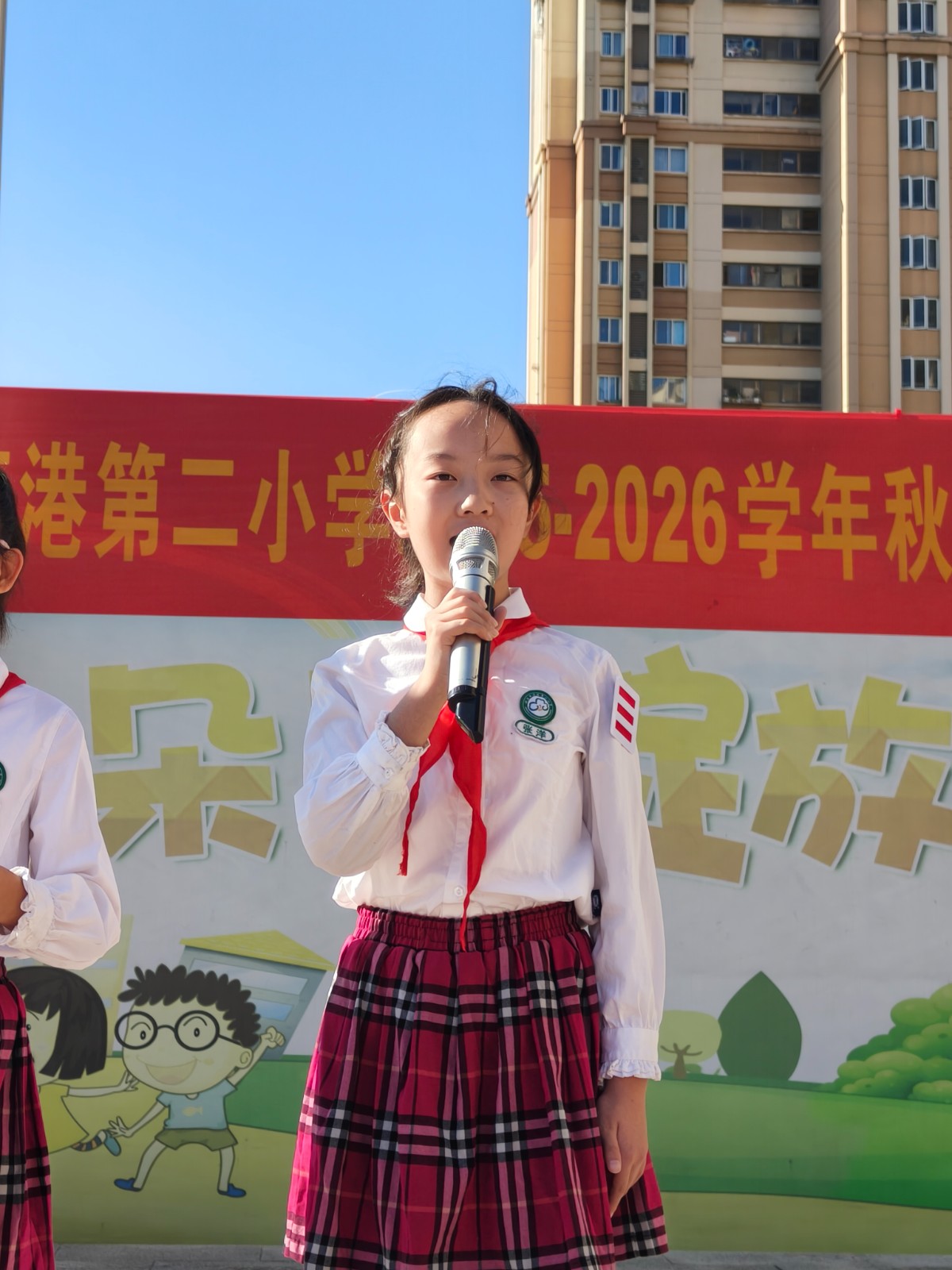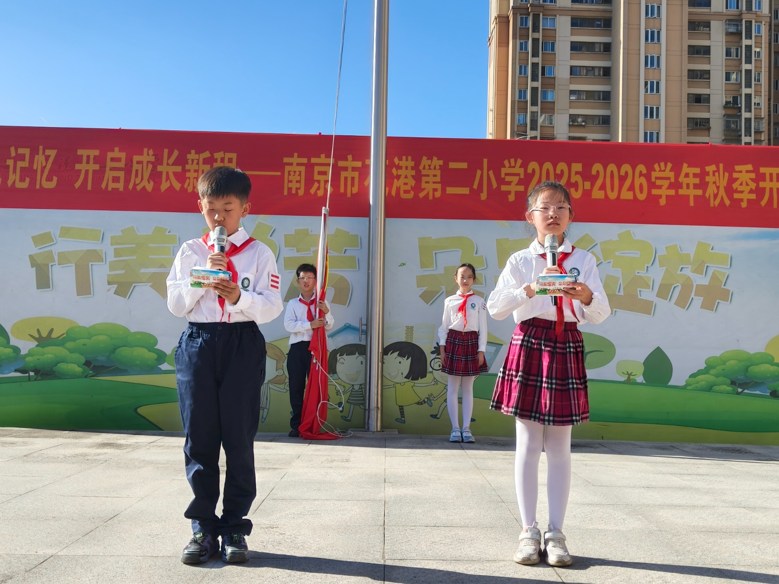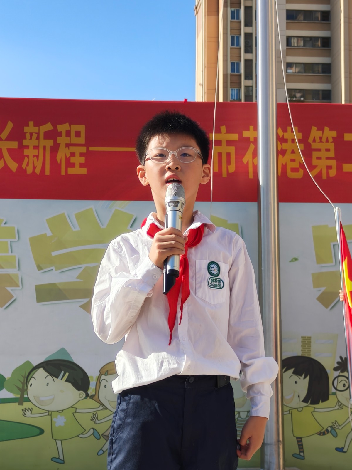 9月22日早上,南京市花港第二小学全体师生在操场举行升旗仪式。本次主持升旗仪式的是五(2)中队。