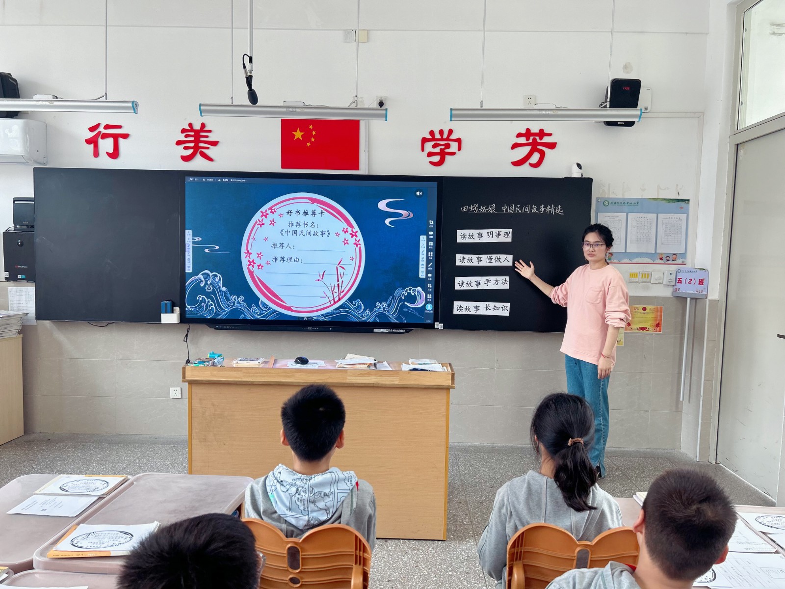 为了保证南京市栖霞区“十四五”教育科学规划课题《融合图书馆资源的“享悦读”特色项目的校本研究》和《幼小衔接视角下小学亲子阅读的实践研究》的持续推进,2024 年 10 月 18 日,南京市花港第二小学全体语文组以“搭建支持性学习支架 激发进阶性思维活动”为主题进行了2024-2025学年第一学期的第二次组内教研活动。此次教研由卢云老师带领五(2)班的学生,为大家呈现了一场充满趣味与智慧的《田螺姑娘 中国民间故事精选》的阅读之旅。