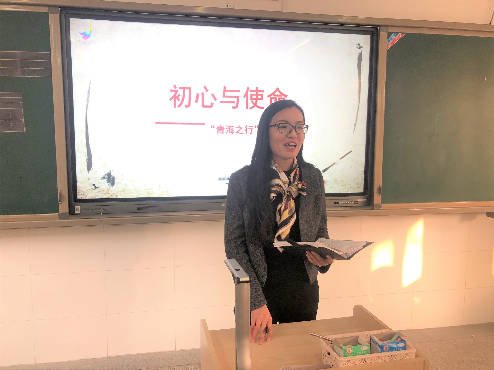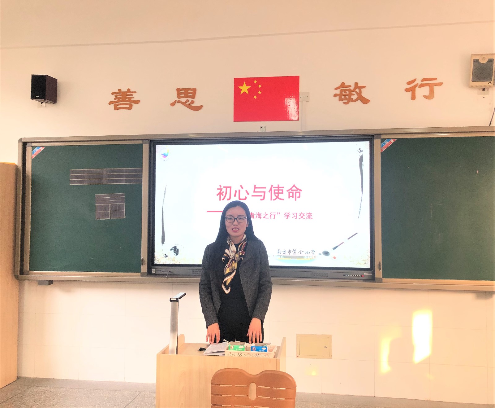 王芳校长将她的感受讲给我们听。在去青海路上,沿途的风景让人心灵清净,永远向往。这不同于江南水乡清婉含蓄的风景,就如同我们身边个性不一的孩子,横看成岭侧看成峰。每个孩子都有他独特出众的一面,因此我们作为教育工作者,要有一双欣赏美的眼睛。王校长说,学校当地的牛羊漫步在荒原里,沐浴阳光,肆意生长。而孩子的成长规律也正是如此,我们在陪伴孩子成长的每一环节,都要遵循孩子的成长规律,这样才能让孩子向着蓝天、向着更高更远的方向生长。还有生长在青海的柳树,正如陈忠实笔下的高原柳,若非亲眼多见,又怎能体会那株柳的坚忍不拔。教育亦如此,“纸上得来终觉浅,绝知此事要躬行”,对孩子的教育要切实落到实践中来,有体验才会有体会,有实践才会得真知,因此体验是最好的教育方式。学校的教室一尘不染,那里的老师任劳任怨、好问求学,这些扎根于高原上的园丁,用一腔热血浇灌着盛开的花朵。王芳校长鼓励我们积极向青海老师学习,不忘教育人的初心和使命,立足岗位,吃苦奉献,迎难而上,砥砺前行!