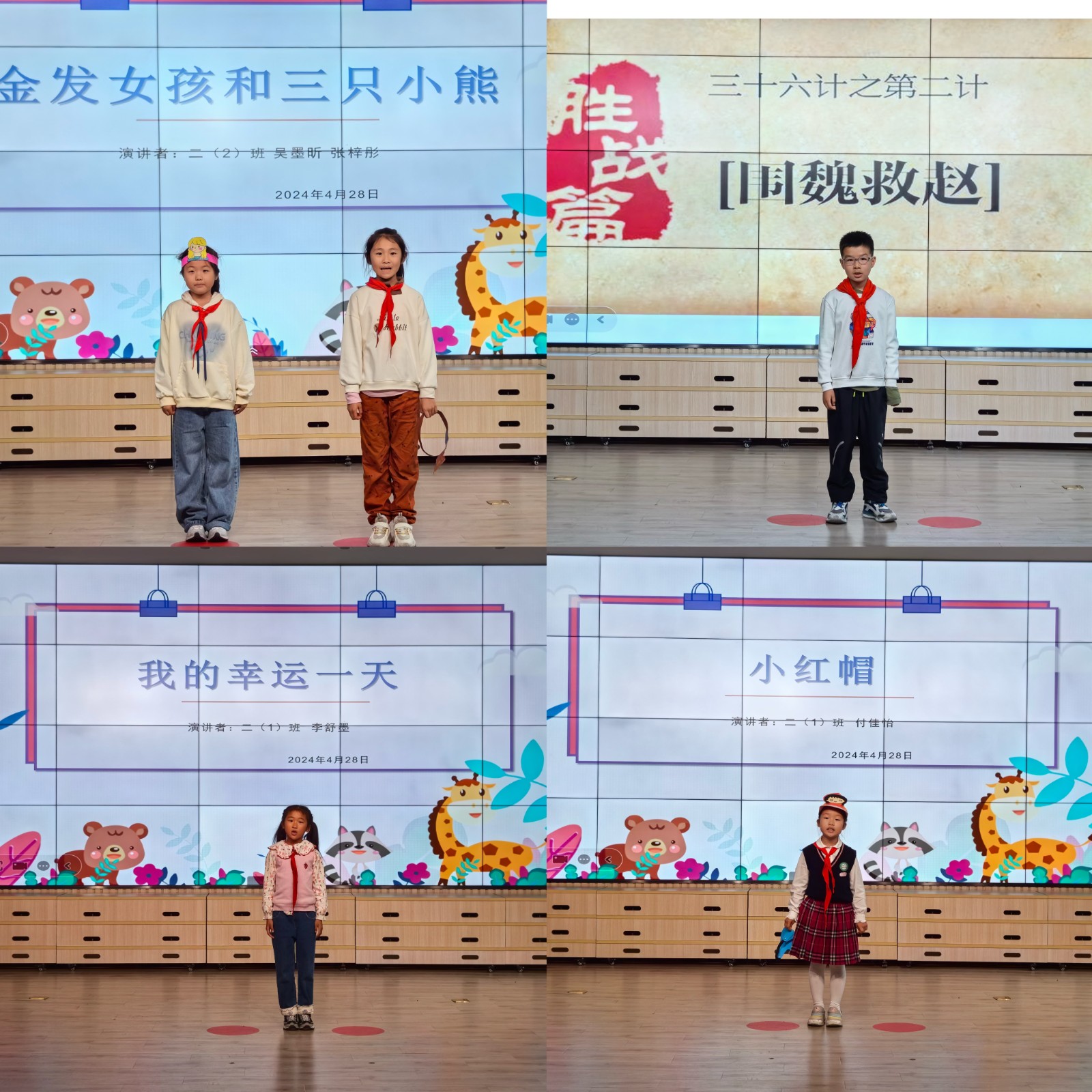 故事是孩子们认知世界的一扇窗户,是开启智慧之门的一把钥匙。在多姿多彩的故事里,我们聆听花开的声音;在妙趣横生的故事里,我们感受梦幻的气息。为了提升孩子们的语言表达能力,锻炼勇气和胆识,激发孩子们对阅读的兴趣,2024年4月24日在南京市花港第二小学报告厅举行二年级讲故事大赛。