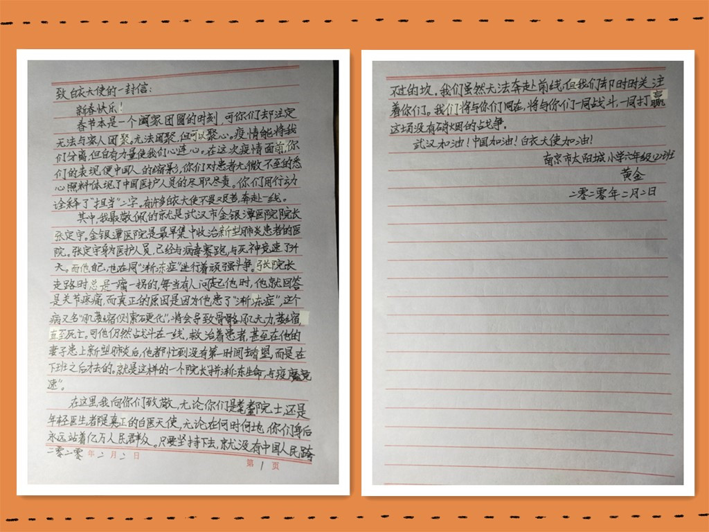 新型冠状病毒感染的肺炎疫情牵动着人们的心,我校积极响应上级部门号召,鼓励学生在家以多种多样的形式,创作出精美的书画、书信作品,用心意致敬全体医护工作人员。