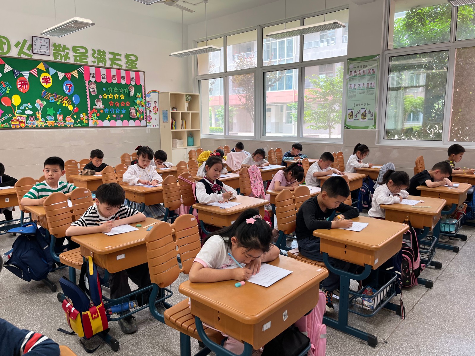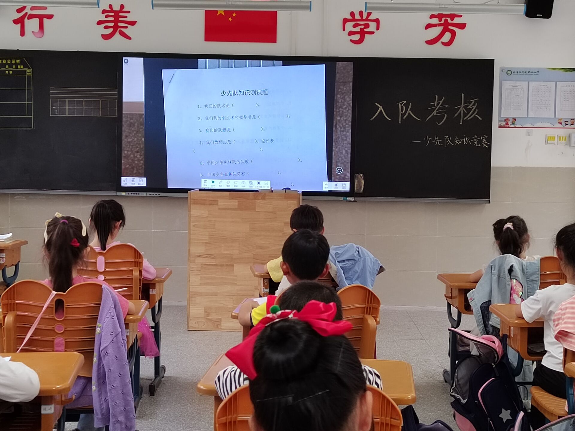 答题时,一年级的学生们自信满满,认真读题,用心答题,为成为一名合格的少先队员而努力。