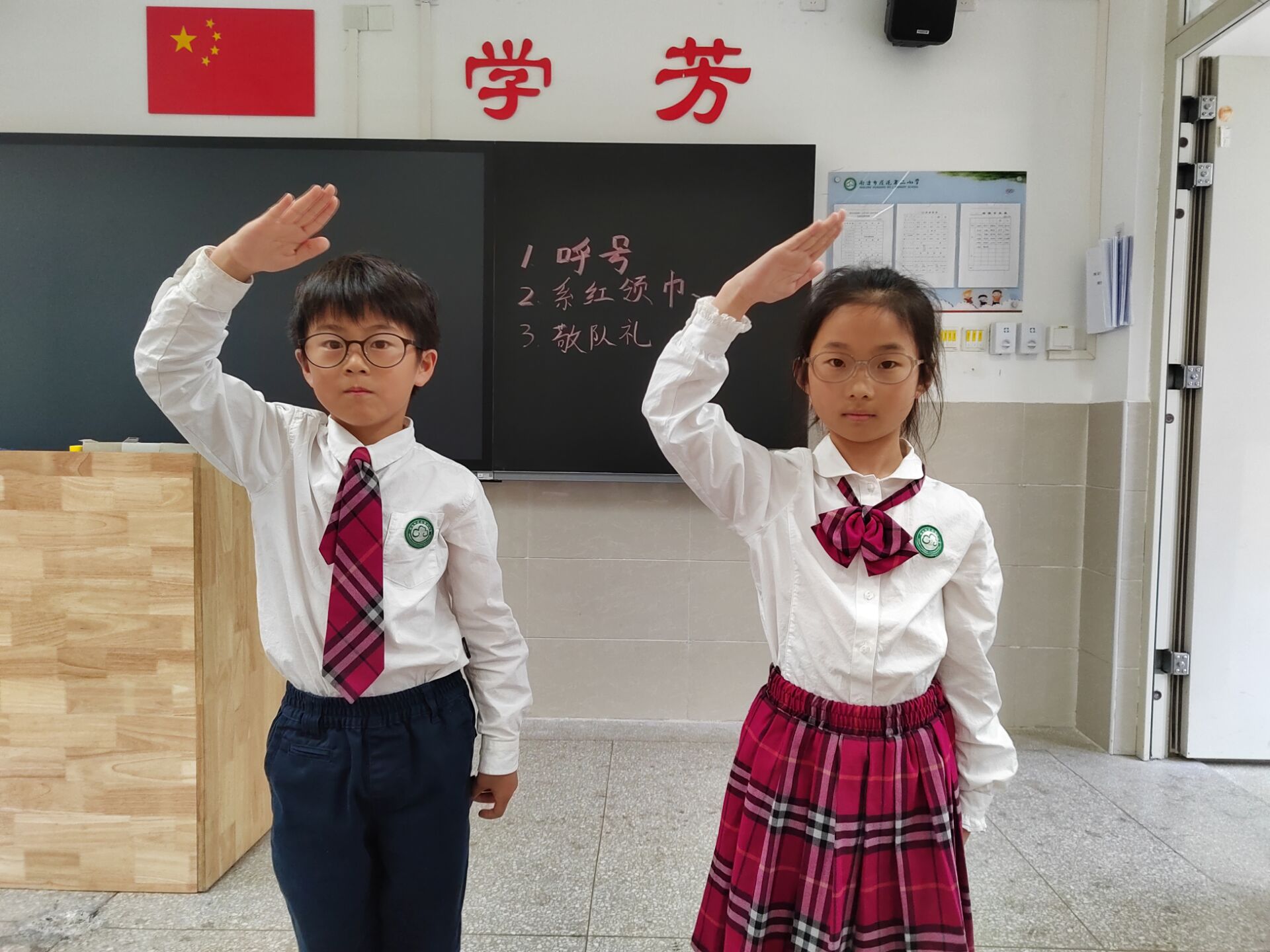 2022年5月25日,南京市花港第二小学举行“系红领巾、呼号、敬队礼”的少先队队前培训。