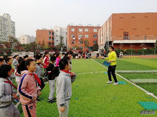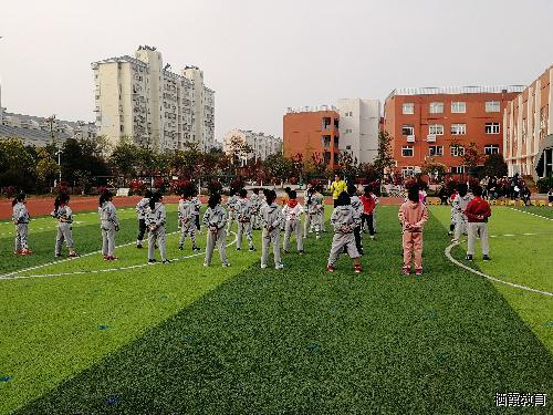 4月3日上午,在一声声整齐的“一二一”的口令声伴随下,张雪婷老师的蹲踞式跳远的校内研究课拉开帷幕。张老师带着同学们进行了充分的热身活动,从精心设计的跑步环节到整齐划一的跆拳舞都能看出张老师对于同学们有序的组织与训练。