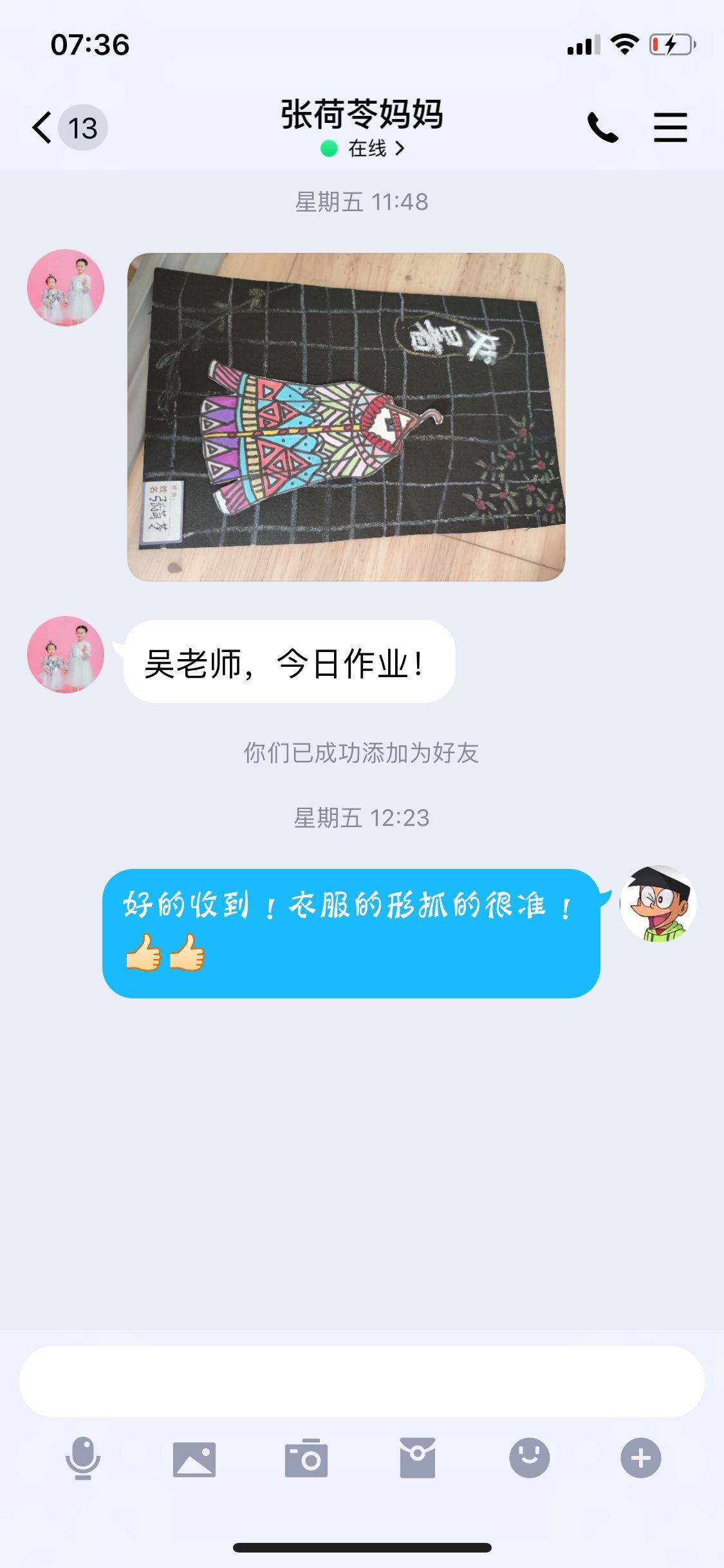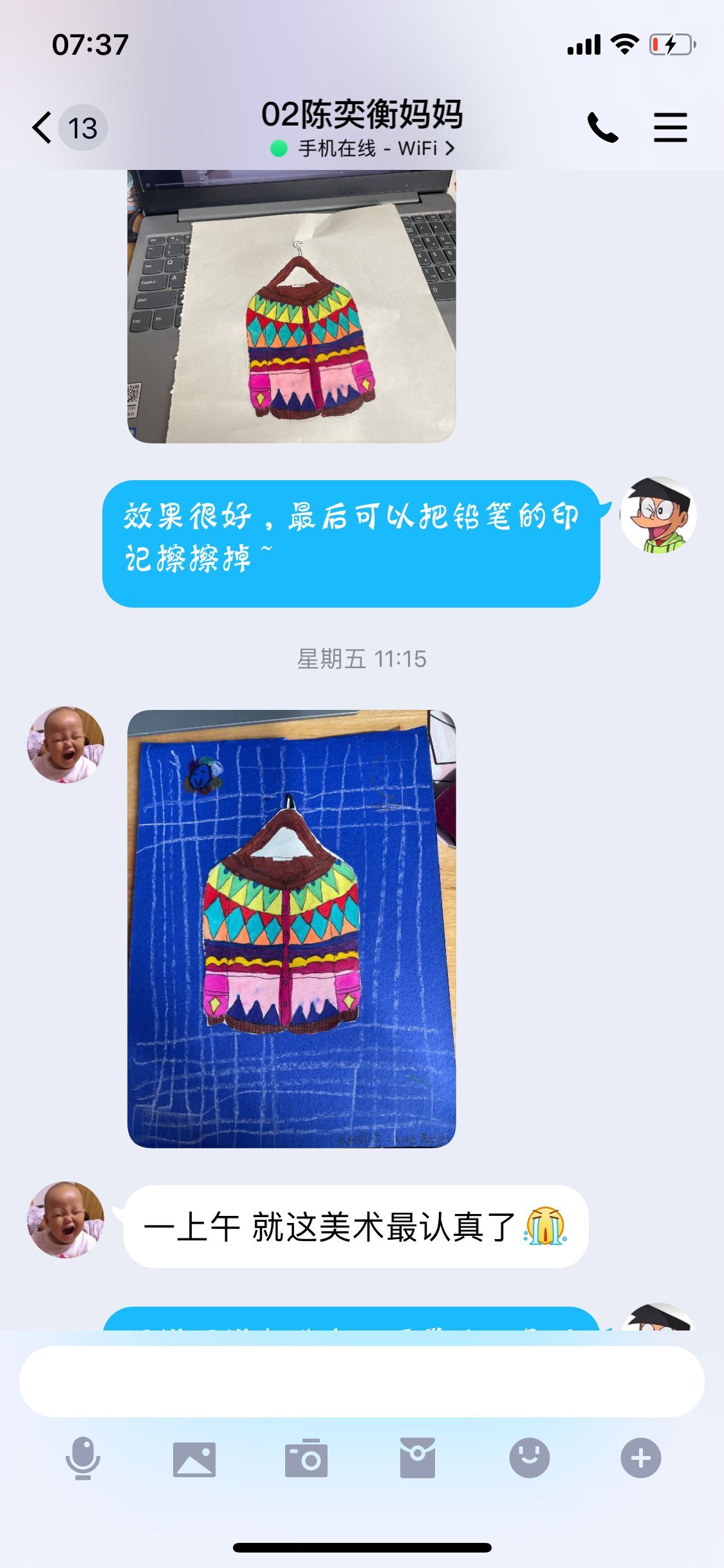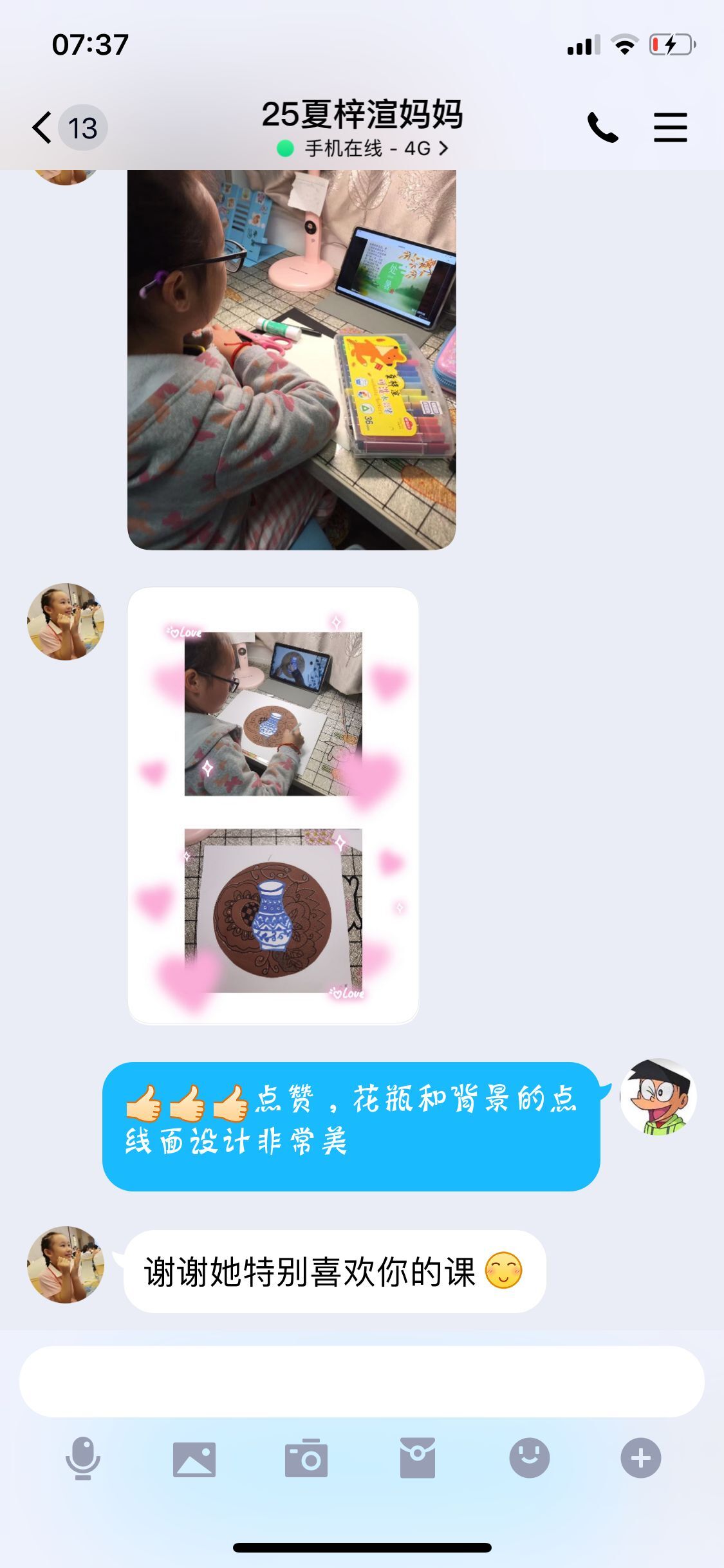 不一样的教学,学生有不一样的成长。线上教学打破了空间的限制,让学生居家也能学习。随着一幅幅作品的完成,吴晗老师和张静老师在作品的表现方法、用笔用色、构思构图等方面给予指导,给出明确的点评,激励孩子们不断进步。