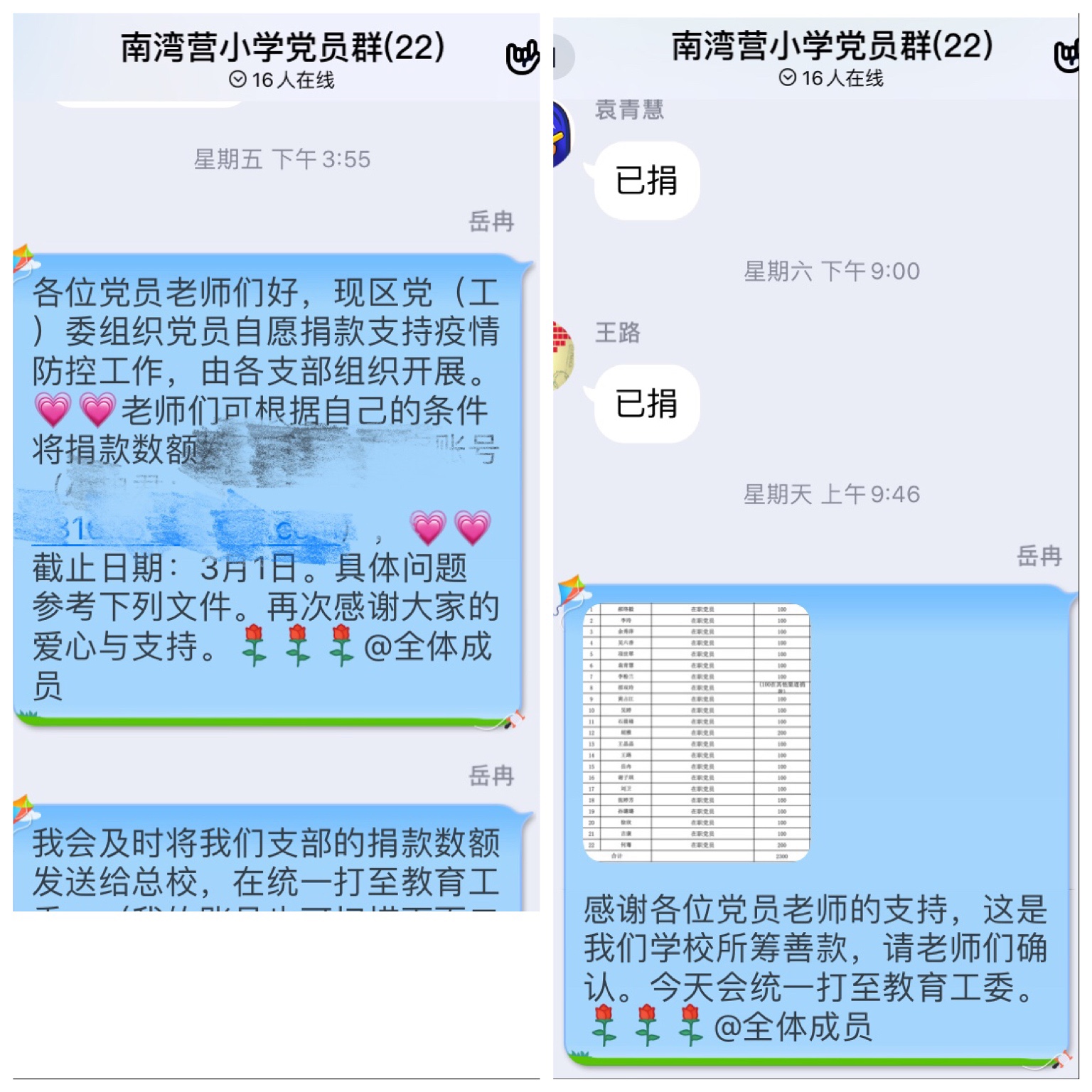此外,响应以习近平同志为核心的党中央的号召,全国广大共产党员为支持新冠肺炎疫情防控工作踊跃捐款。党员老师们的善心和爱意汇聚成汩汩暖流,在春天的神州大地奔涌流淌。