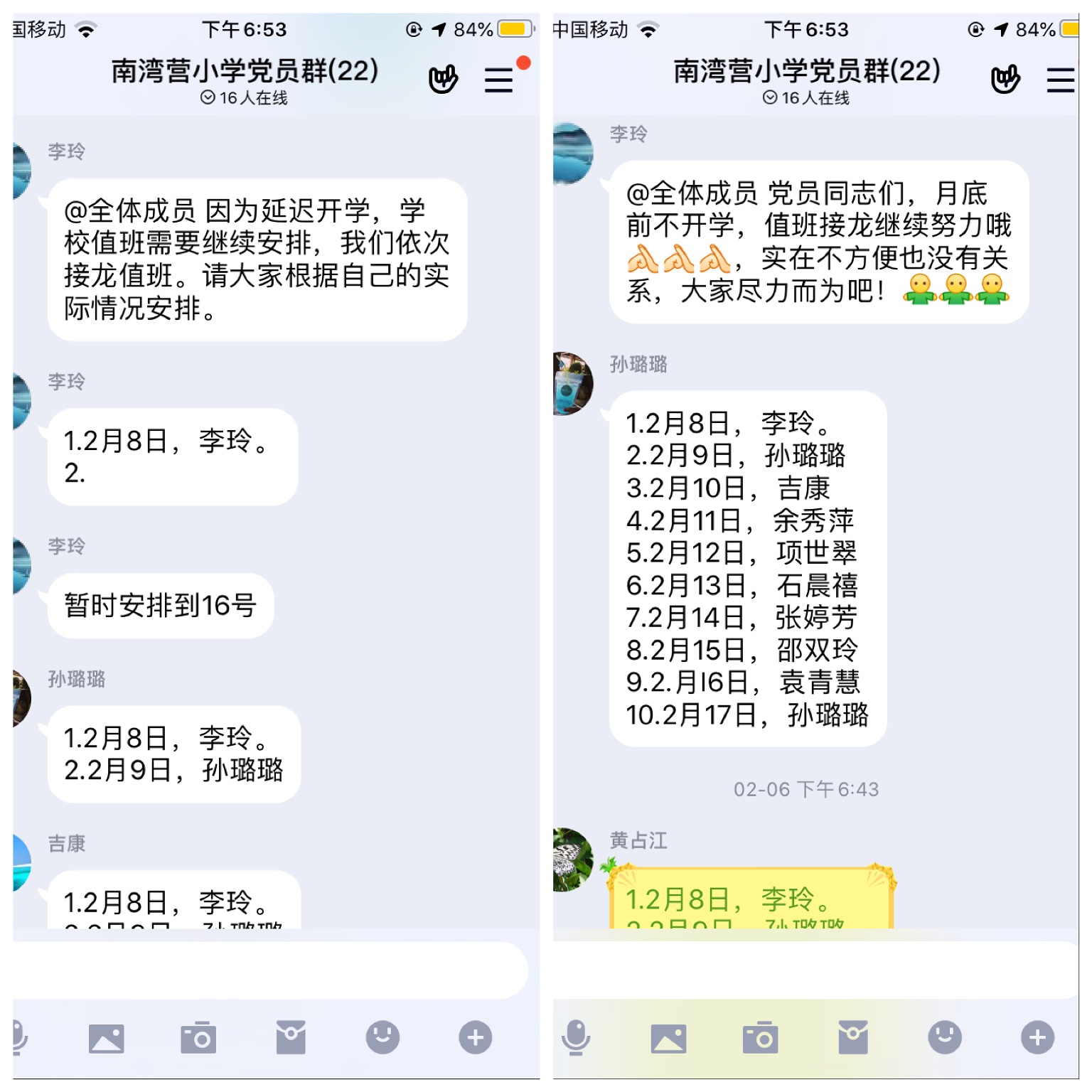 因学校延迟开学,为保证校内的安全,我校党支部书记李玲同志立即响应号召,带头参与到学校的值班工作中。其他党员同志也克服困难积极参与。