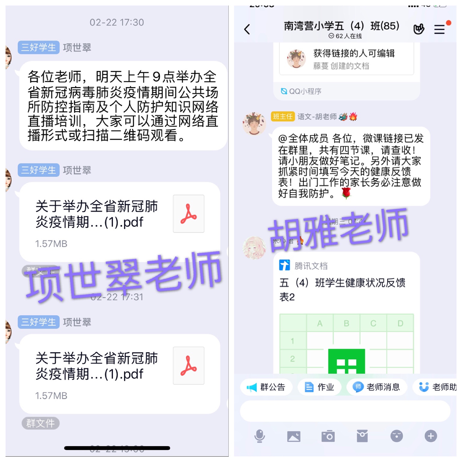 为全力做好疫情防控和停课不停学工作,党员同志始终率先垂范,联合家长和学生众志成城,抗击疫情。党员教师们合理利用校园网站、微信公众号、班级QQ群等网络平台积极宣传防疫知识,严格执行“日上报”制度。