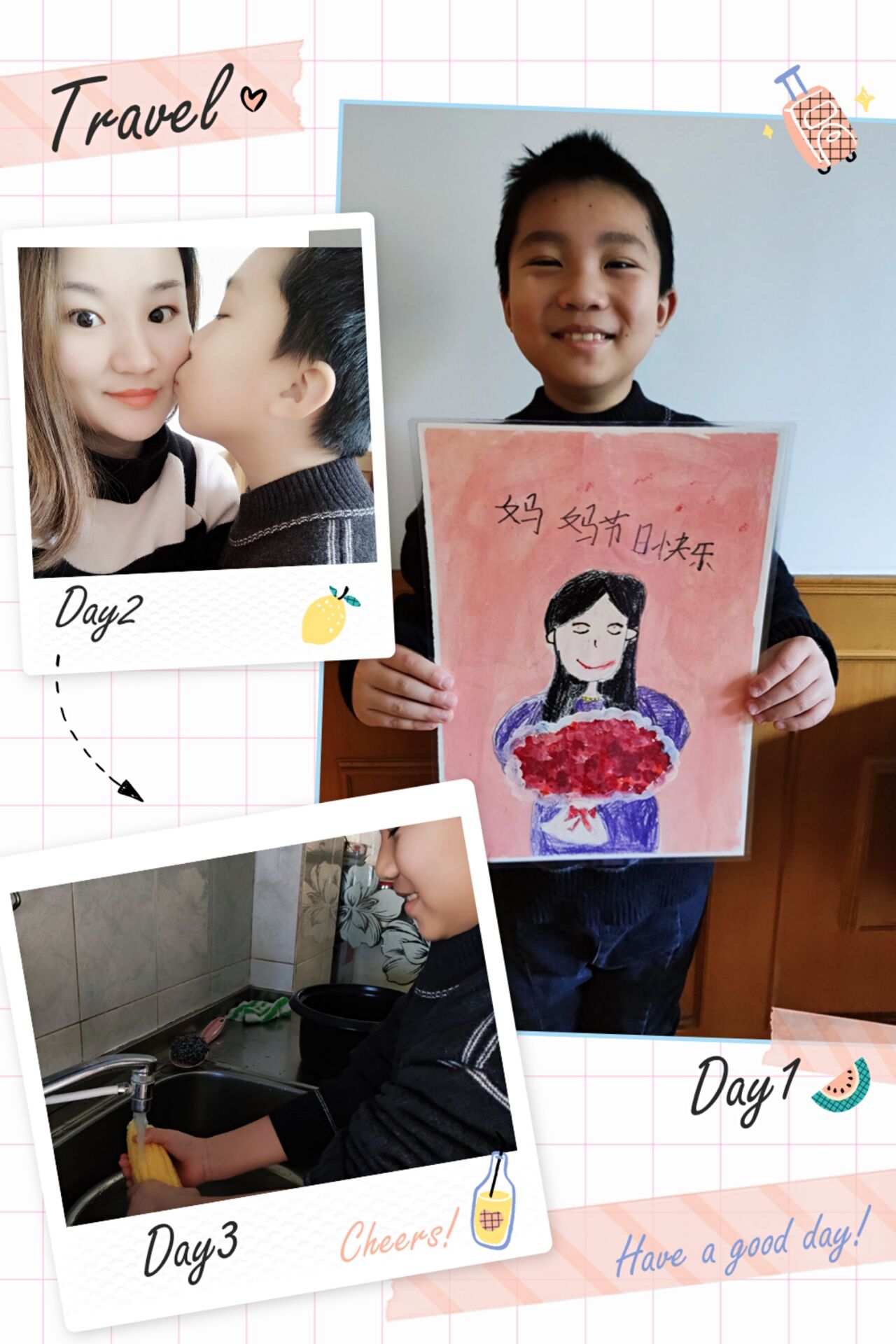 昨天布置的3个活动,同学们都在积极参与,有的同学早早起床为妈妈做早餐,有的忙着打扫卫生,有的亲手制作了贺卡和礼物,还有的给奶奶捶背……从大家的笑容中,我们能感受到幸福的味道。