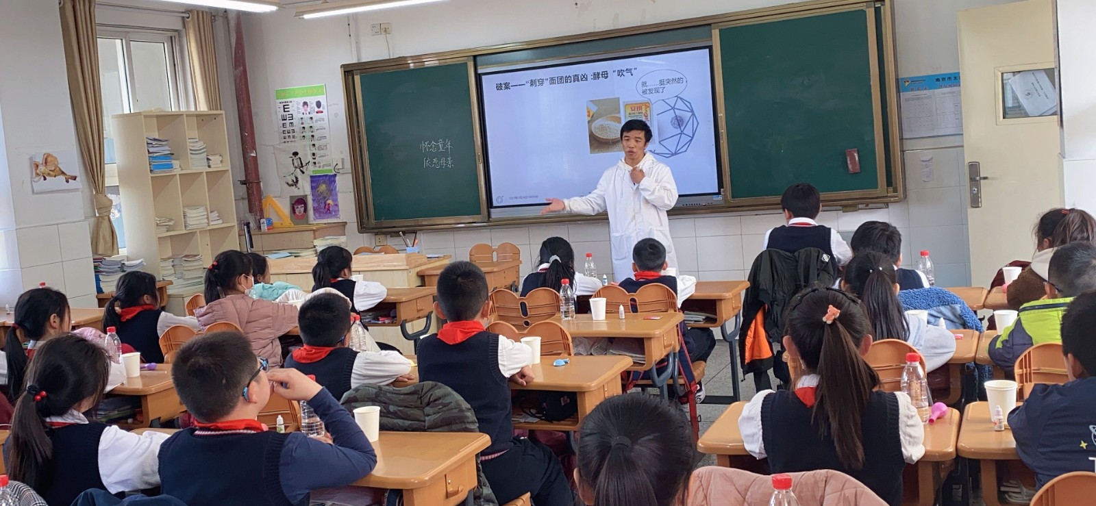 2021年3月24日下午,南师大化科院的志愿者们来到太阳城小学四(3)班,带来了一场有趣的“酵母也会呼吸”实验。
