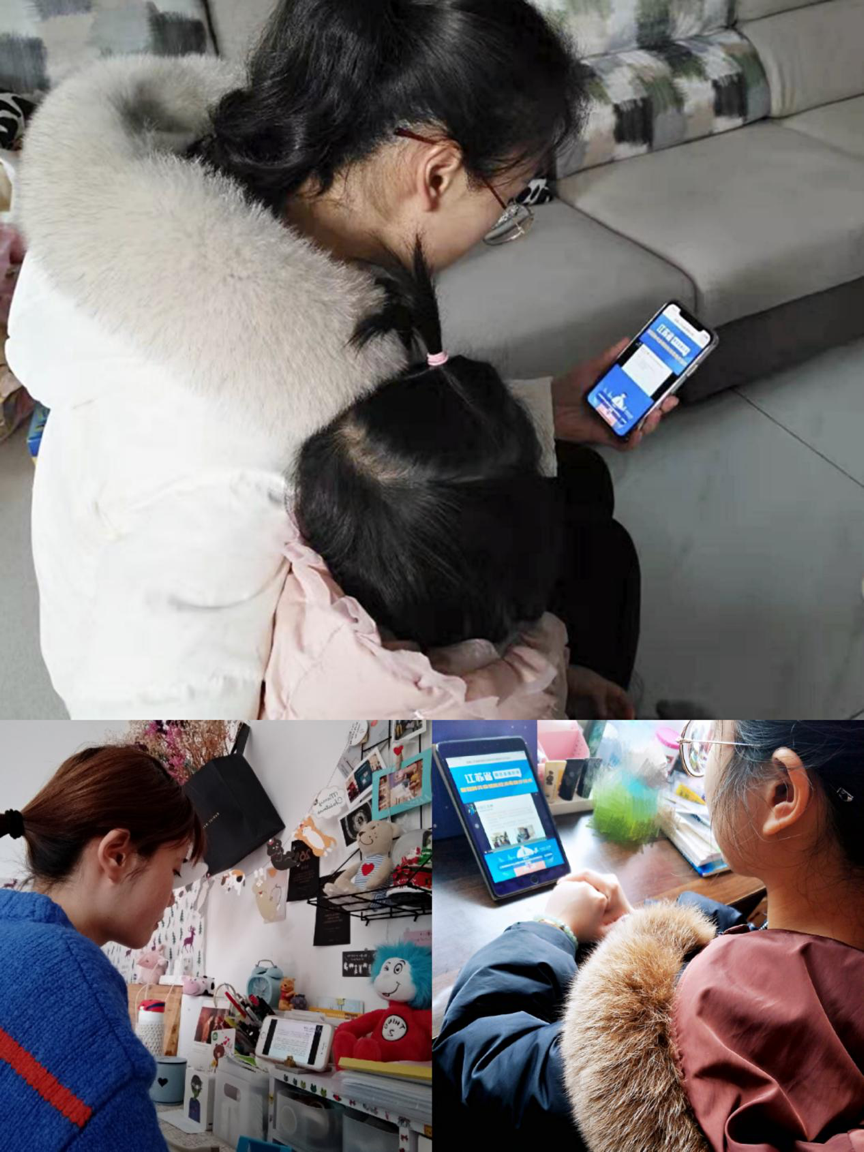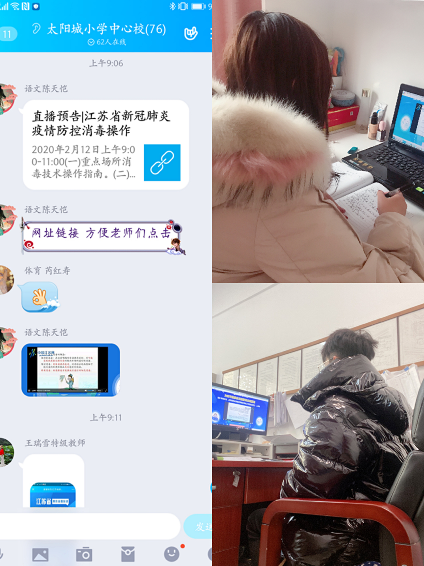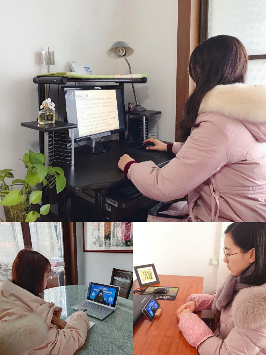教师们在家中,有的用电脑,有的用手机,有的用ipad,都在积极响应国家的号召,团结一心对抗病毒。