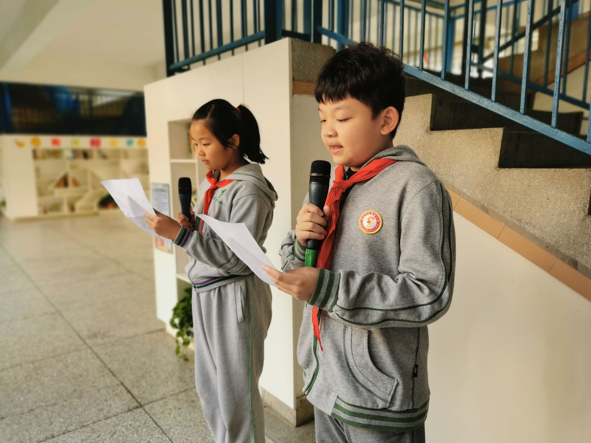 2021年11月3日,五2班的任雅煦、王浩越同学在集体晨会上进行“八礼”系列之“观赏之礼”主题讲话。