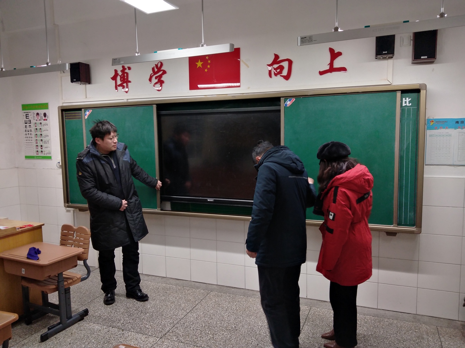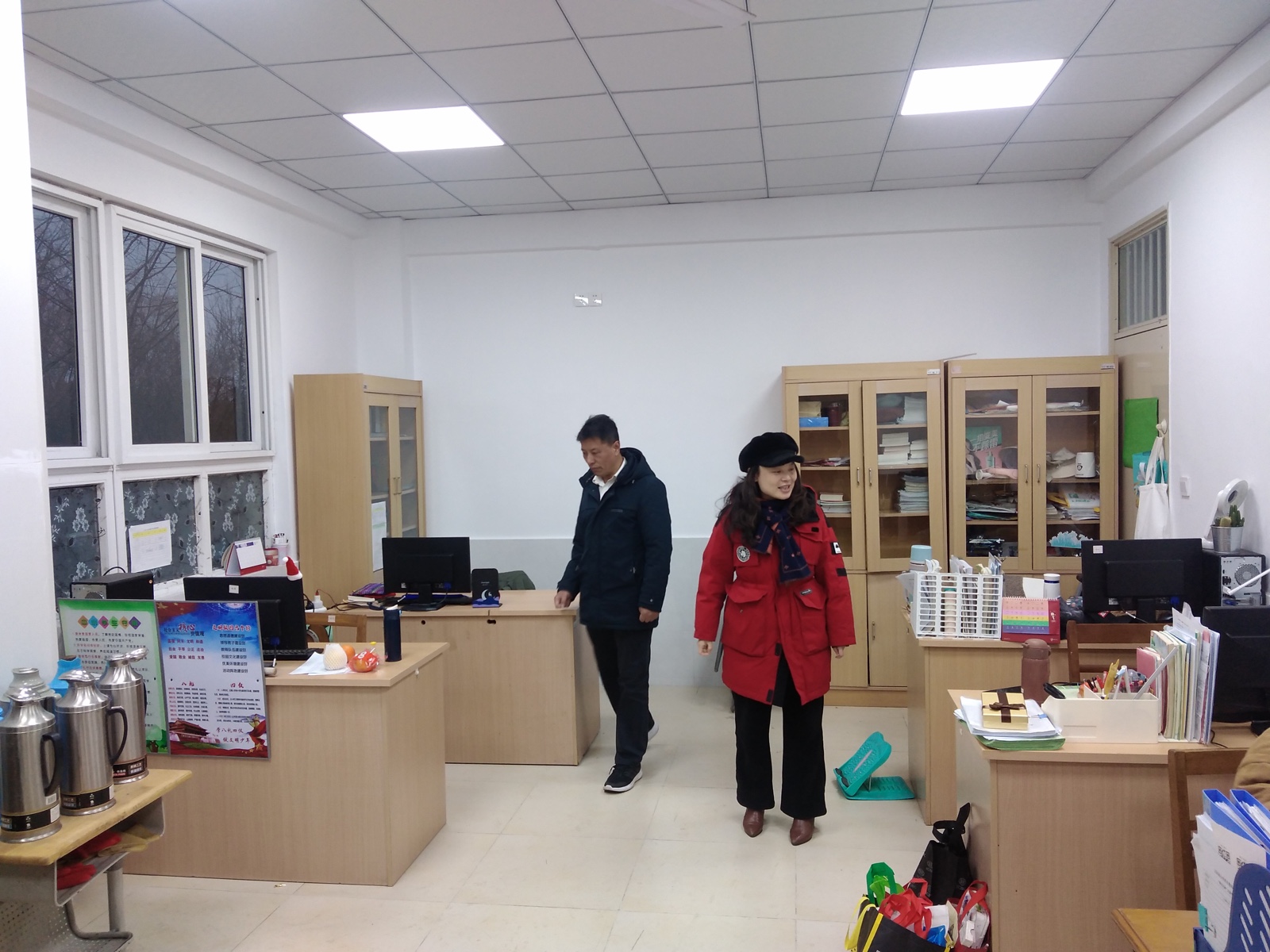2021年12月31日下午,张文燕校长带领教导处,总务处,德育处,教科室等各部门领导实地对办公室,专用教室,食堂,门房,班级,各类设施,水电等进行了一系列的仔细检查。