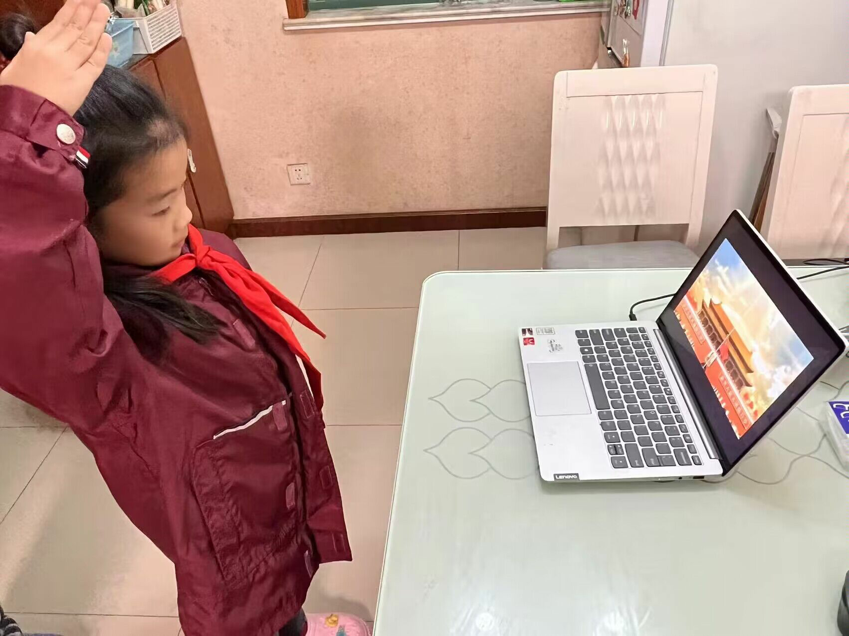 春芽,夏涤,秋篱,冬绒,2022年,于你我是一段怎样的时光?这一年,我们的祖国发生了许多大事:北京冬奥会上的自信,香港回归25周年的荣光,神舟飞天时的梦想,抗击疫情中的肝胆相助……2022年12月26日,太阳城小学全体少先队员和一年级学生齐聚线上,共同参加“清澈的爱,只为中国”线上升旗仪式。