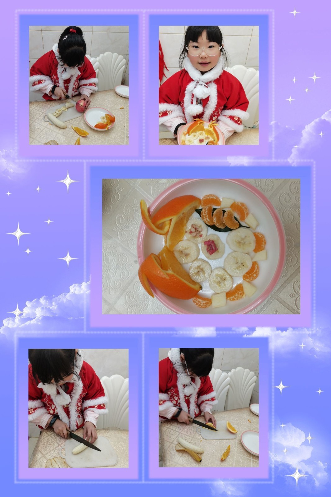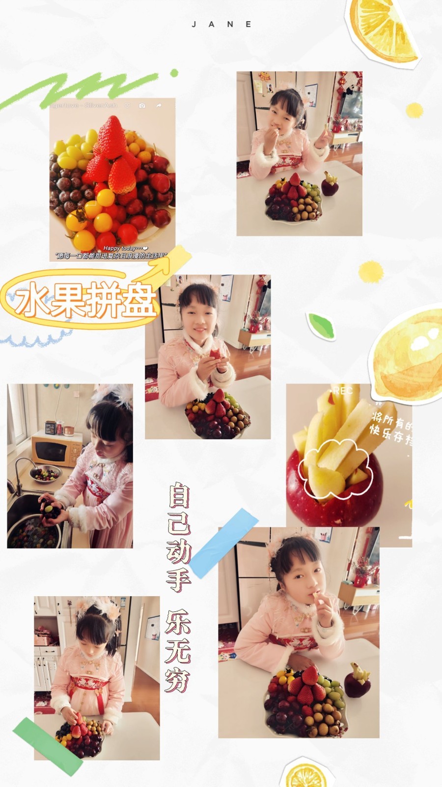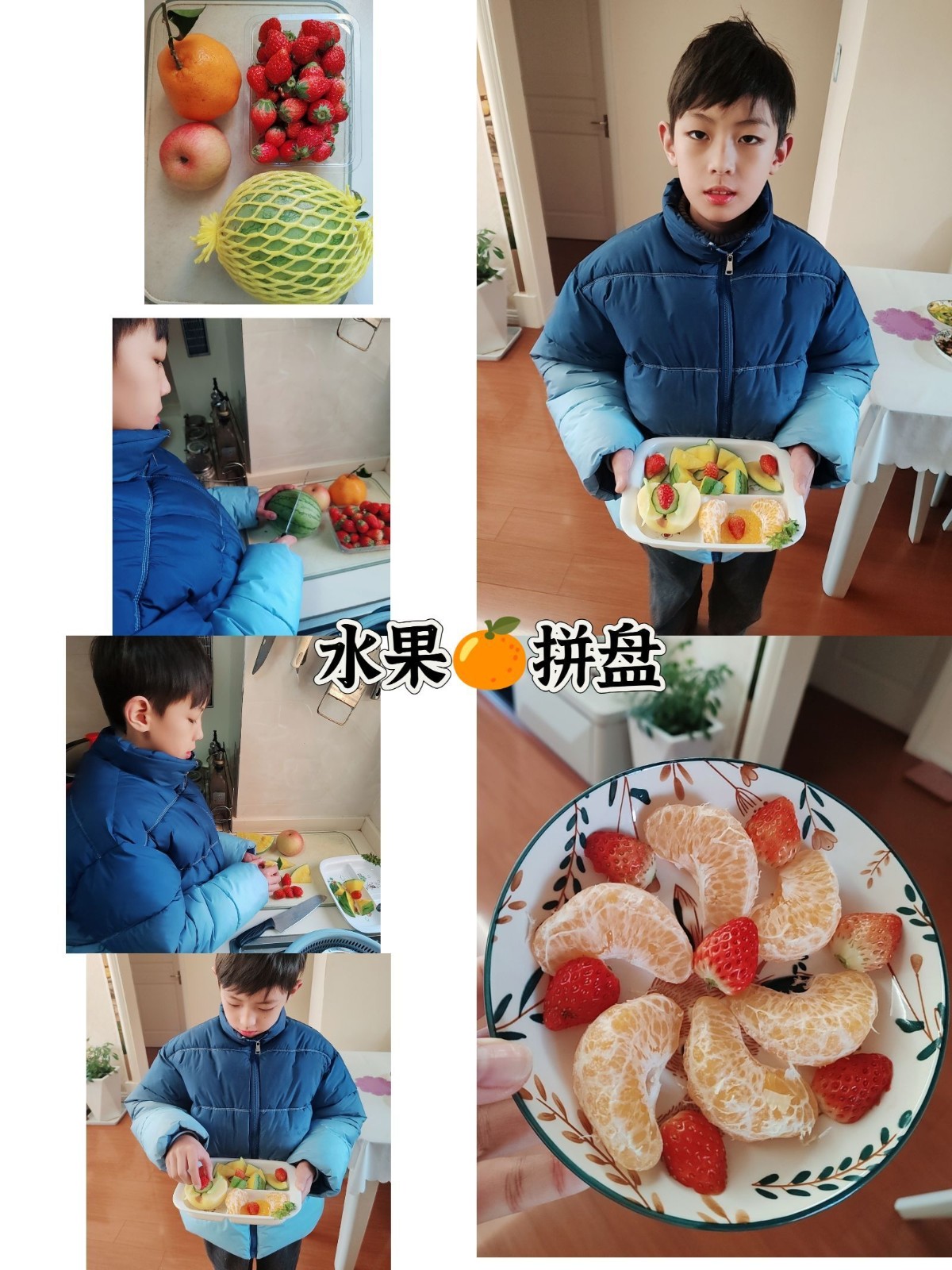 为弘扬博大精深的中华美食文化,倡导绿色、健康、安全、营养的饮食观念;更为了培养学生综合素质、提高劳动实践能力以及生存技能,丰富同学们的假期生活,让同学们体会父母的辛劳以及一日三餐的来之不易。我们南京市花港第二小学在寒假开展了“新年齐动手,劳动乐无穷”的劳动实践活动,三(1)班的同学纷纷动起手来,用水果和蔬菜拼接出了缤纷的美食,感受到了劳动的辛苦和幸福!