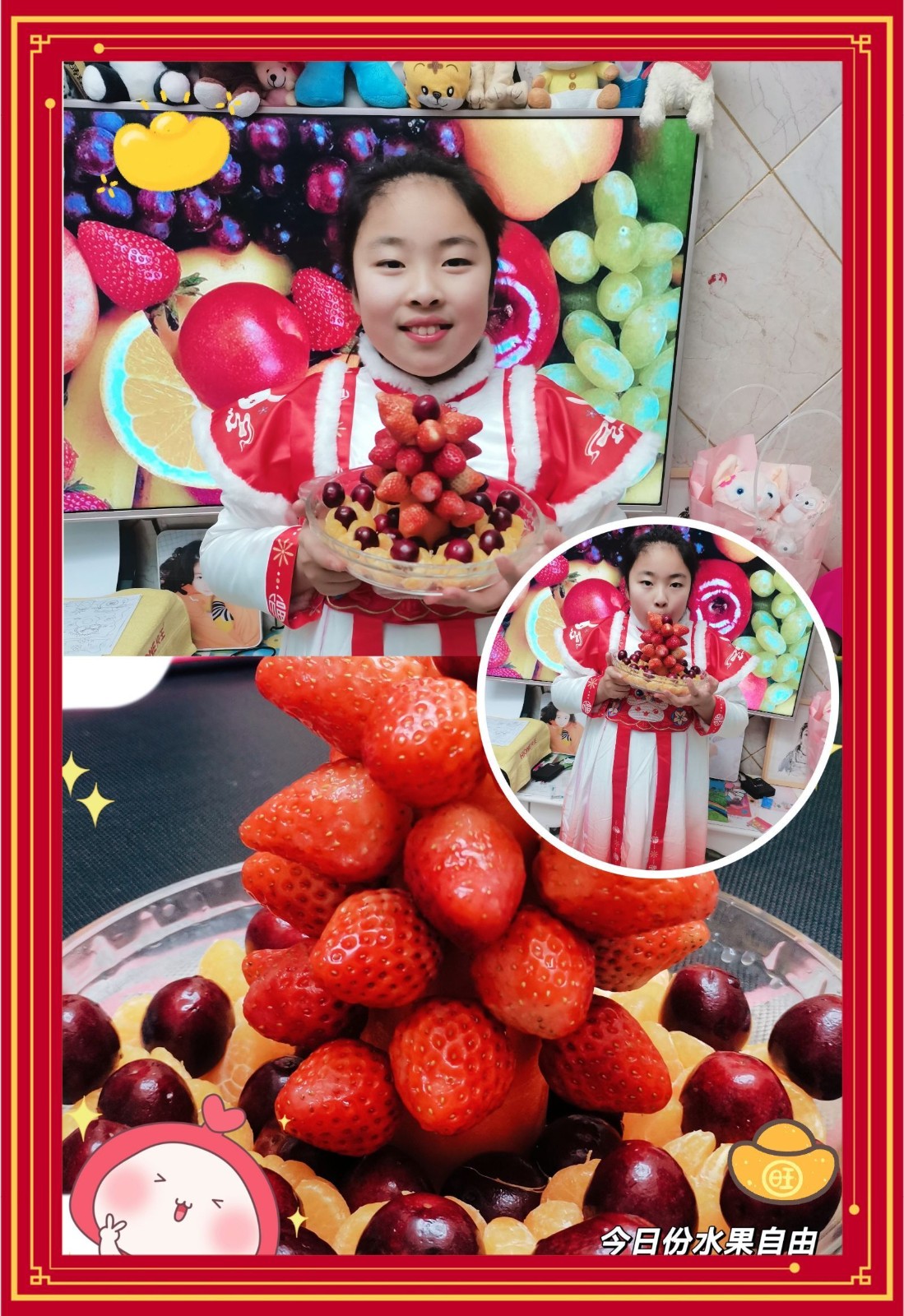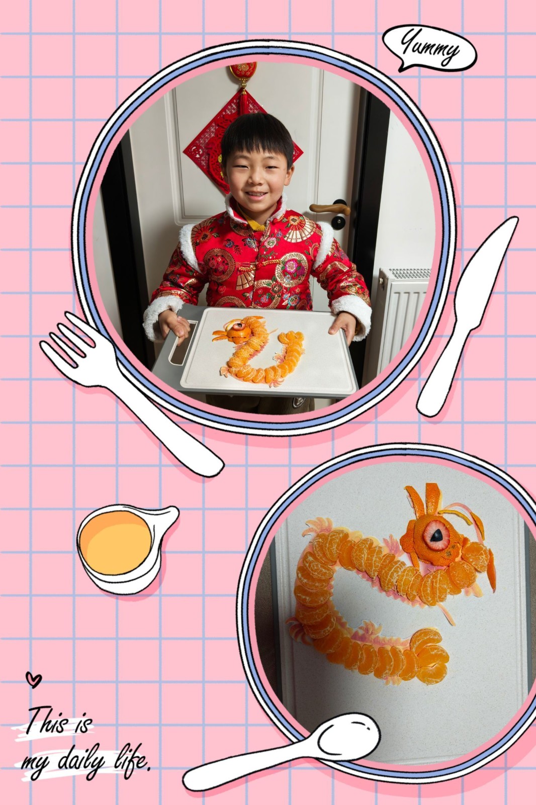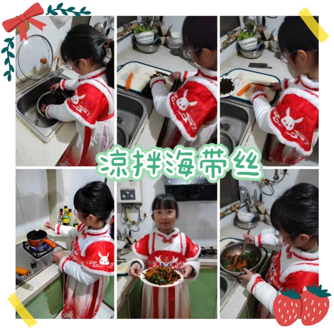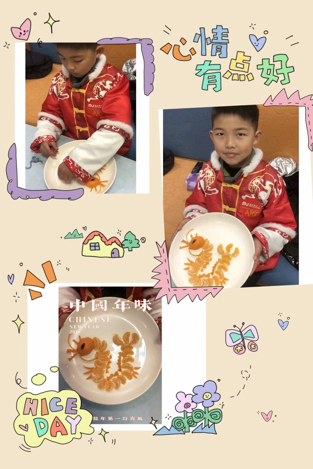 为弘扬博大精深的中华美食文化,倡导绿色、健康、安全、营养的饮食观念;更为了培养学生综合素质、提高劳动实践能力以及生存技能,丰富同学们的假期生活,让同学们体会父母的辛劳以及一日三餐的来之不易。我们南京市花港第二小学在寒假开展了“新年齐动手,劳动乐无穷”的劳动实践活动,三(1)班的同学纷纷动起手来,用水果和蔬菜拼接出了缤纷的美食,感受到了劳动的辛苦和幸福!