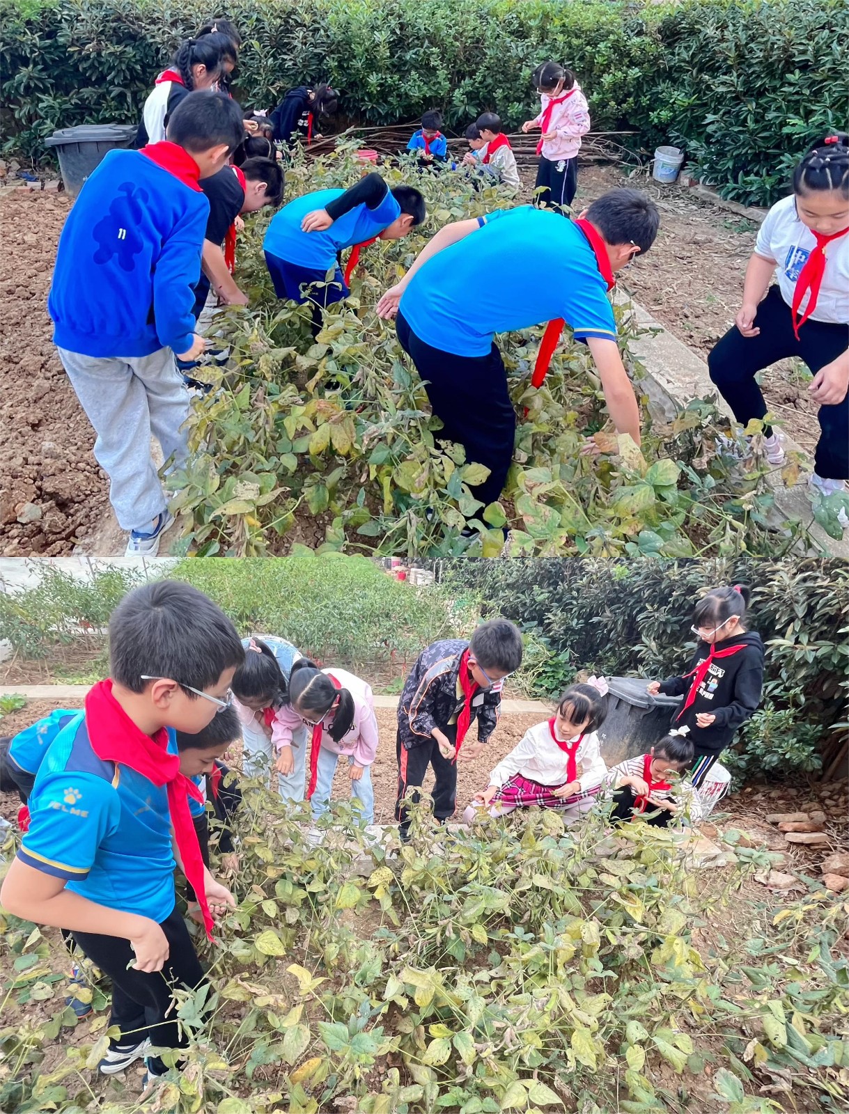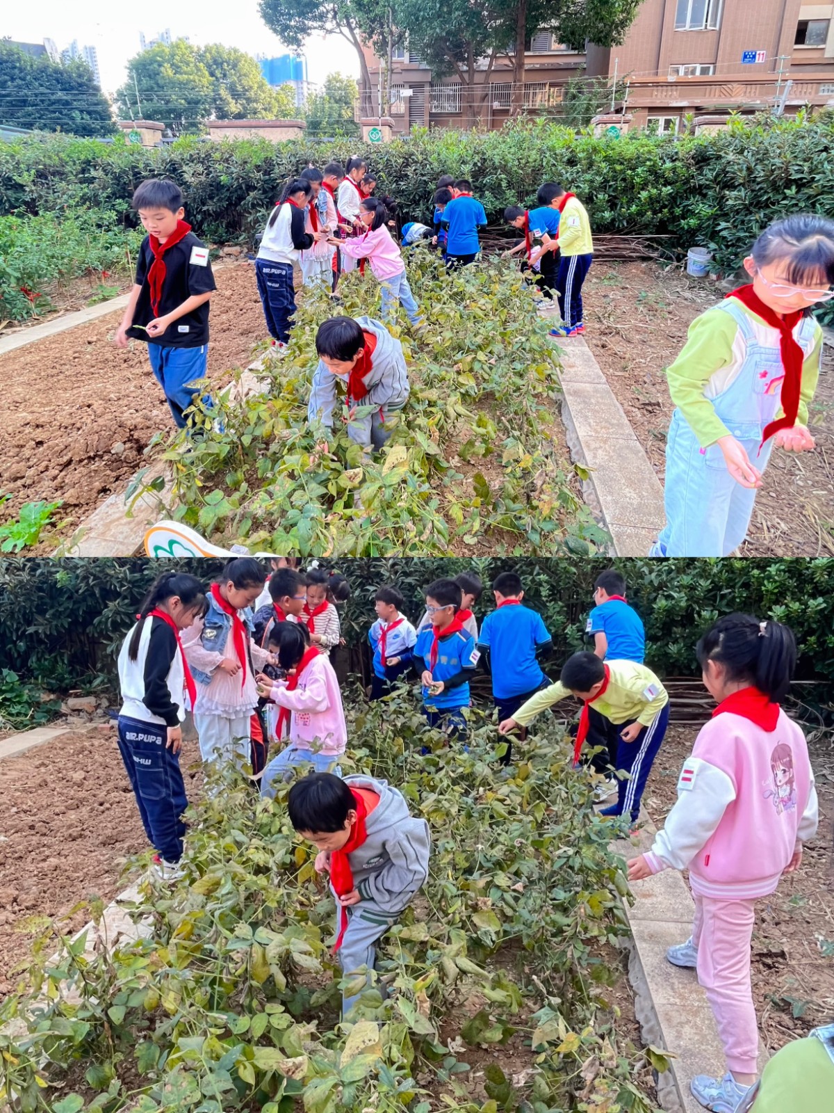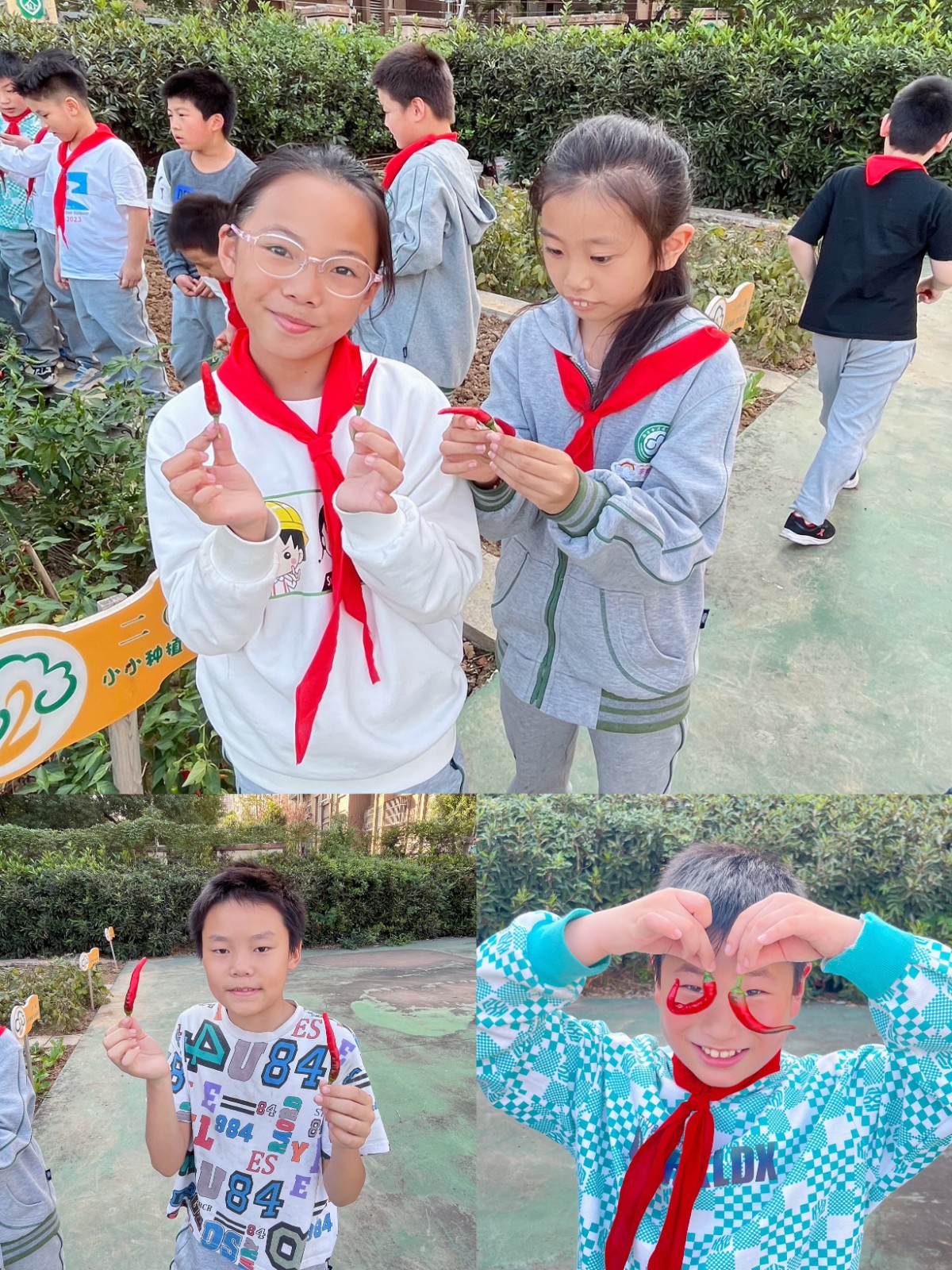 学生们来到自己班级的小菜园里就开始忙碌着,有的忙着摘辣椒,把火红火红的辣椒摘下来,学生们开心的笑脸就像秋日的阳光一样灿烂;有的忙着摘毛豆,绿油油圆鼓鼓的毛豆挂在枝杆上,学生们来到这里就迫不及待地开始采摘起来;一垄垄的红薯藏在土地的深层,学生们费劲地把它们从地底深处挖出。学生们在劳动的过程中体验收获带来的喜悦,同时体会到劳动的艰辛。