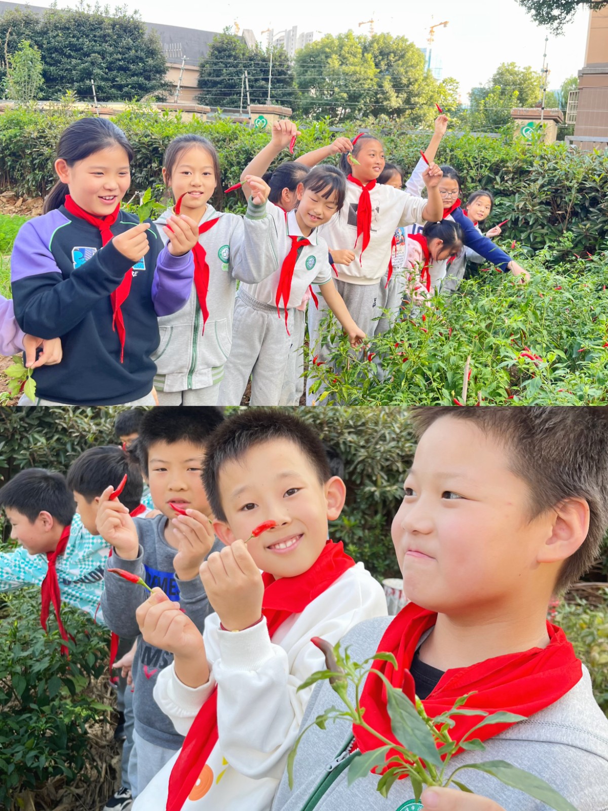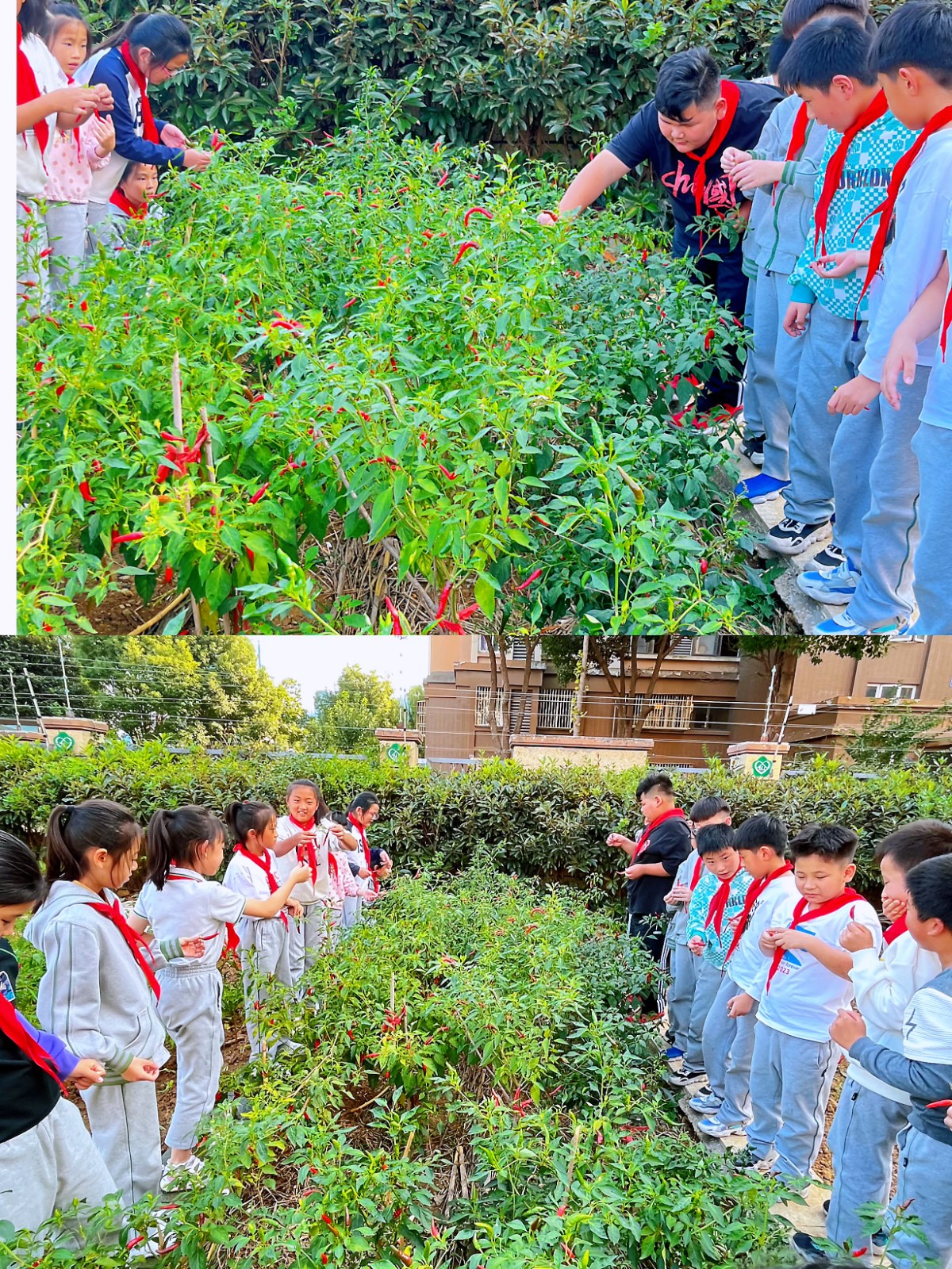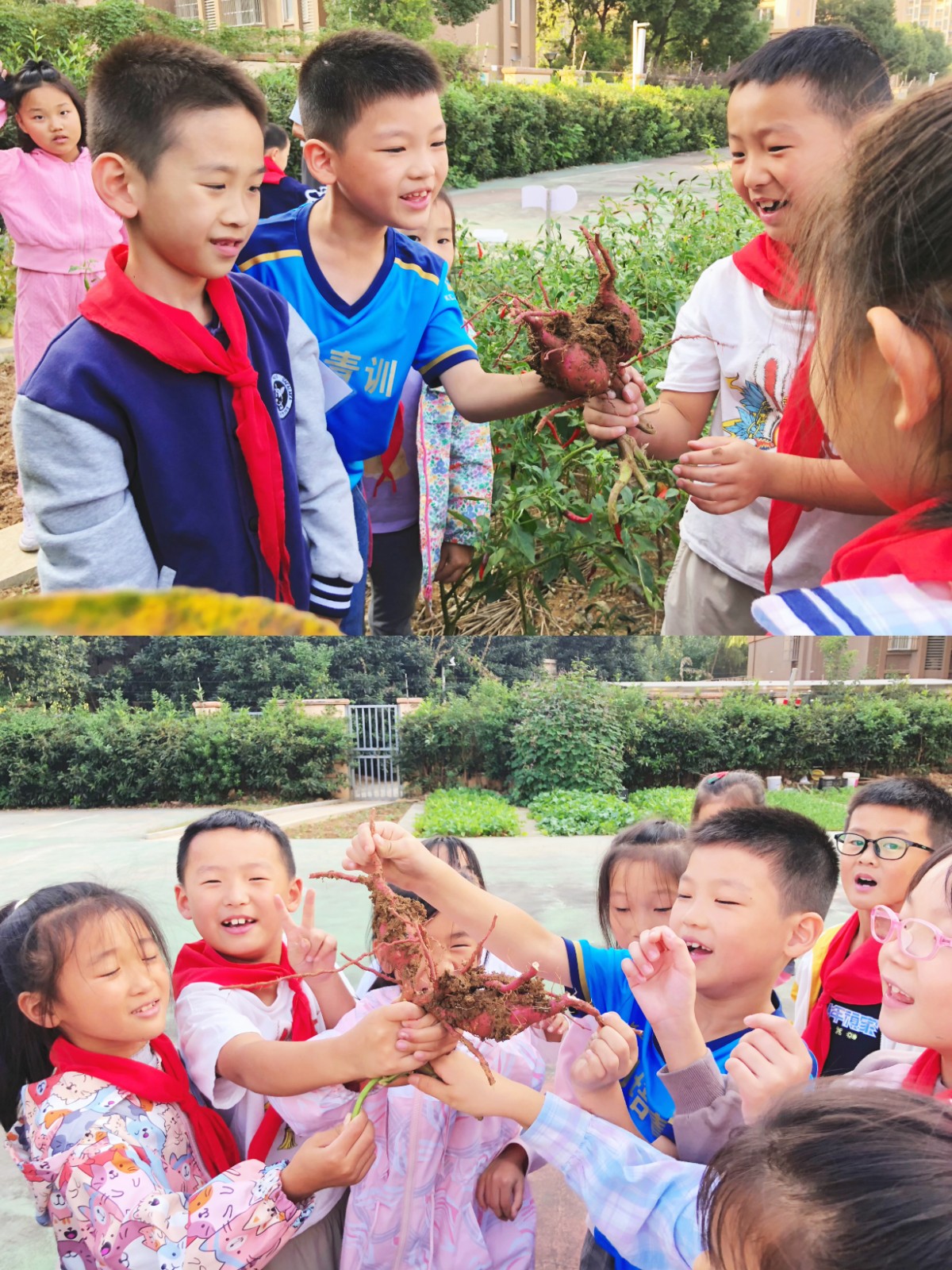 金秋十月在丹桂飘香的季节里,南京市花港第二小学的劳动基地迎来了大丰收,小菜园一畦一畦,那大萝卜不管是白的还是红的,缨儿都是翠绿翠绿的;火红的辣椒挂满枝头;圆鼓鼓的毛豆也成熟了,等待着别人的采摘;一垄垄的红薯藏在地底下等待着学生们的挖掘,学生们开心地在自己班级的劳动菜园里忙碌着,体验收获的喜悦。