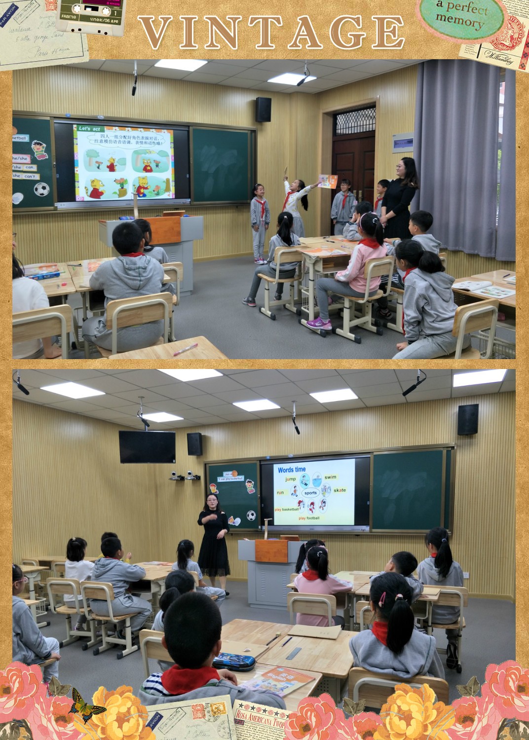 课堂伊始,范老师安排了课前热身环节,让小朋友们伴随英文歌谣跳舞。接着范老师带领同学们复习了旧知,顺势引出了今天的学习内容——《I can play basketball》。在新授环节,范老师出示了精美的图卡,引导学生正确地拼读单词,读准句子。她还鼓励学生们大胆想象,改编课文内容,让学生们及时巩固了本节课的重点句型。在练习环节,范老师采取了小组合作的形式,让同学们分角色表演,上台模拟人物对话。孩子们在参与中收获了知识,培养了语感。整节课学生学习兴趣浓厚,参与度很高,师生之间互动效果明显,课堂气氛活跃。同学们在快乐的学习氛围中得到了发展和提高。