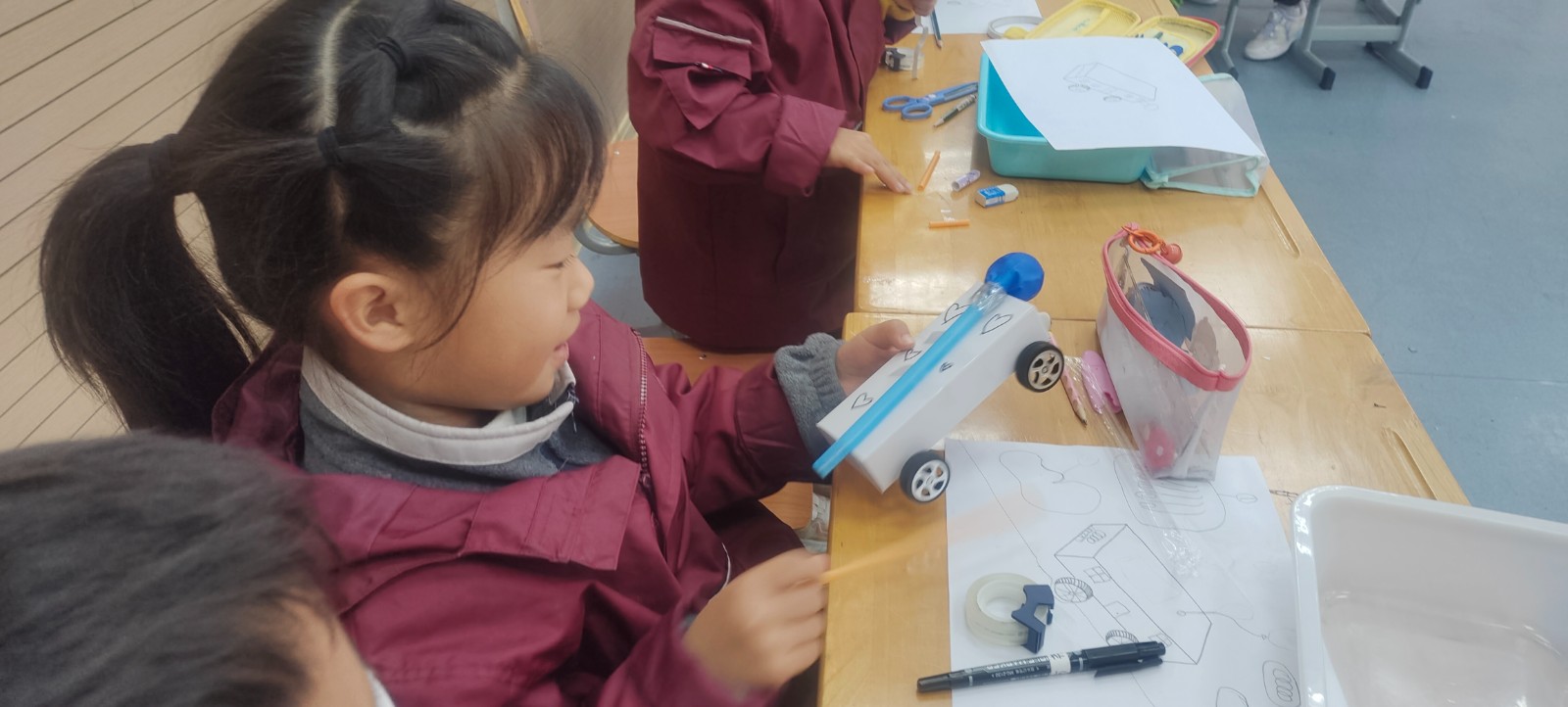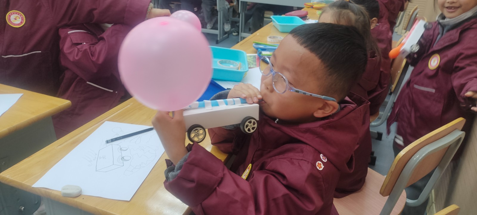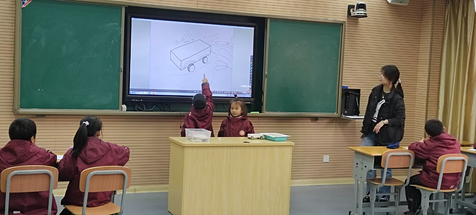 《气球动力小车》是一节工程+科学的跨学科课程,需要3课时,本节课是第二课时。本节课围绕“让小车自己动起来”这一驱动性问题展开,学生们非常感兴趣,接着王老师组织学生先设计本组的制作方案、汇报之后再进行实际制作、最后进行测试以及反思,并为接下来的迭代进行铺垫。