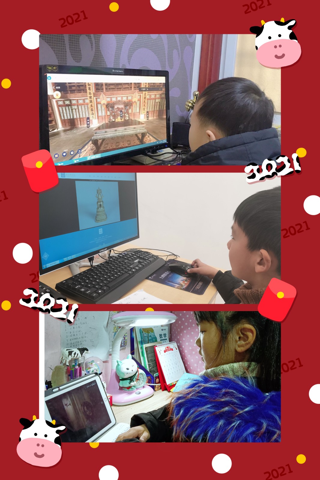 博物馆是管理和展览人类文化和自然遗存的重要场所,是保护和传承人类文明的重要殿堂。为了让队员和家长在疫情期间足不出户,也可以通过在线超高清交互方式,获得“比线下博物馆看得更清晰”的视觉体验,太阳城小学小彩虹中队的少先队员们,利用寒假组织参加了云寻访明南京博物院的活动。