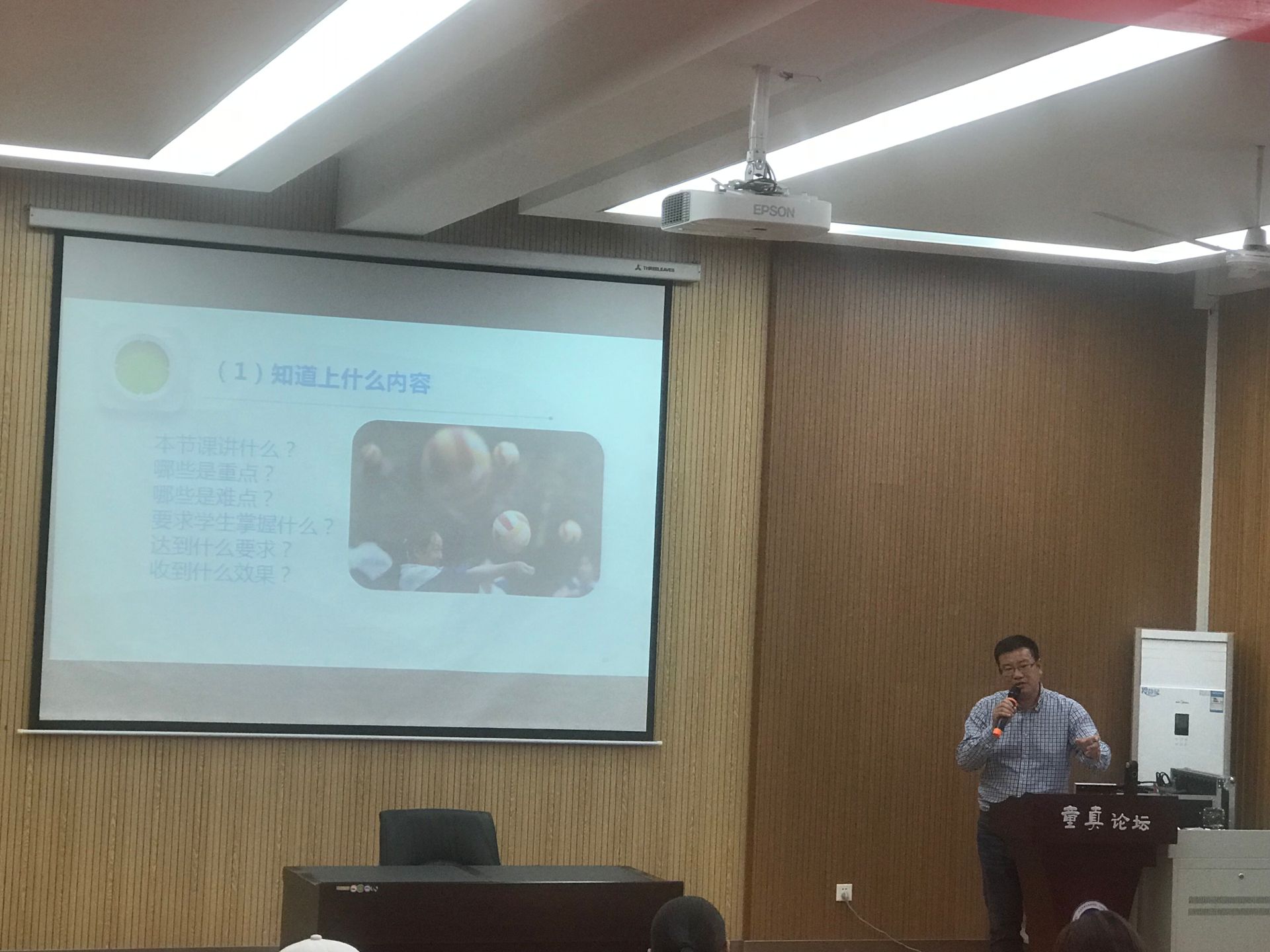 第四环节,区特色教师周昱忠老师结合自身教学经验,发表了自己的看法和观点,大大地激励了各位体育教师对体育教育事业的专注和热爱。接着由区体育教研员王如芳老师对本次活动做出总结,王老师充分肯定此次汇报活动并对所有职初体育教师提出要求:要规范上课的教姿教态、把握好教材重难点、重点提出教案中教学反思的重要性。