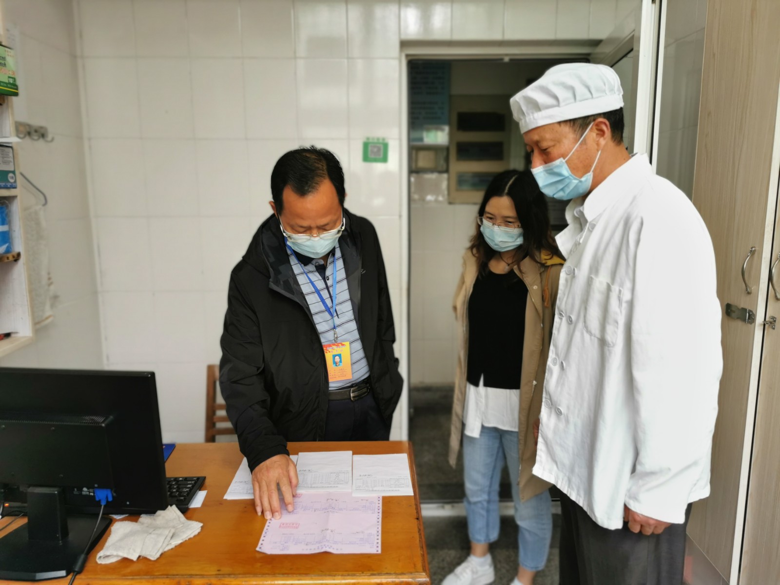 蒋书记先是对学校的门卫室进行了人员以及装备安全落实的相关检查,指出学校安全的第一关一定要严格把控到位,不可马虎松懈。接着检查了学校食堂的台账、卫生以及食品安全的落实,肯定了学校工作的细致与严谨。