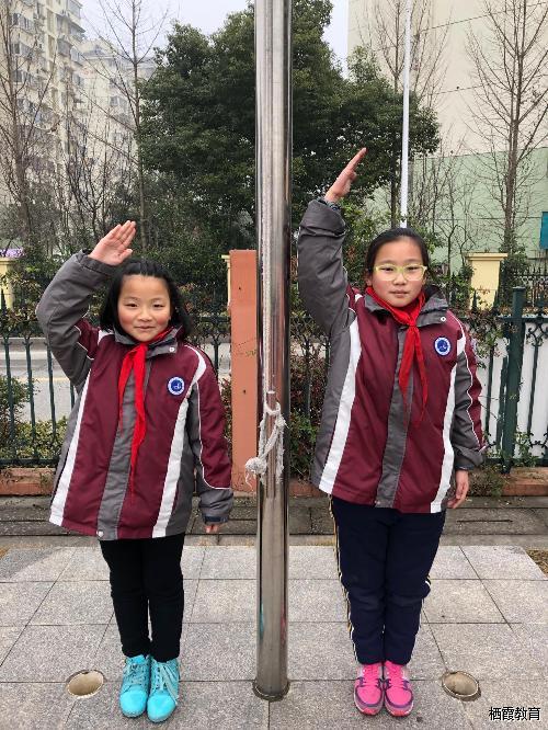 这是一个团结奋进的班集体、一个温馨和谐的大家庭、一个生机盎然的乐园、一片纯真圣洁的心灵土壤。18位活泼可爱的男生、17位天真可爱的女生组成了三(4)班这个温暖的大家庭。今天担任升旗手的是邱熙雯和邱畅然同学。