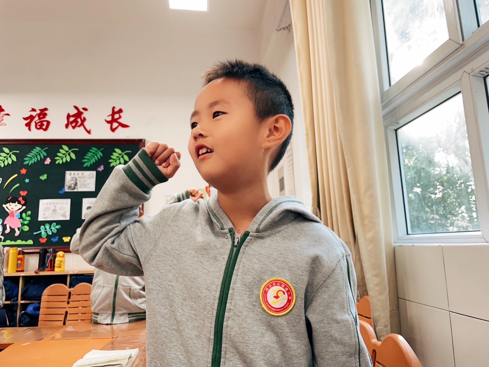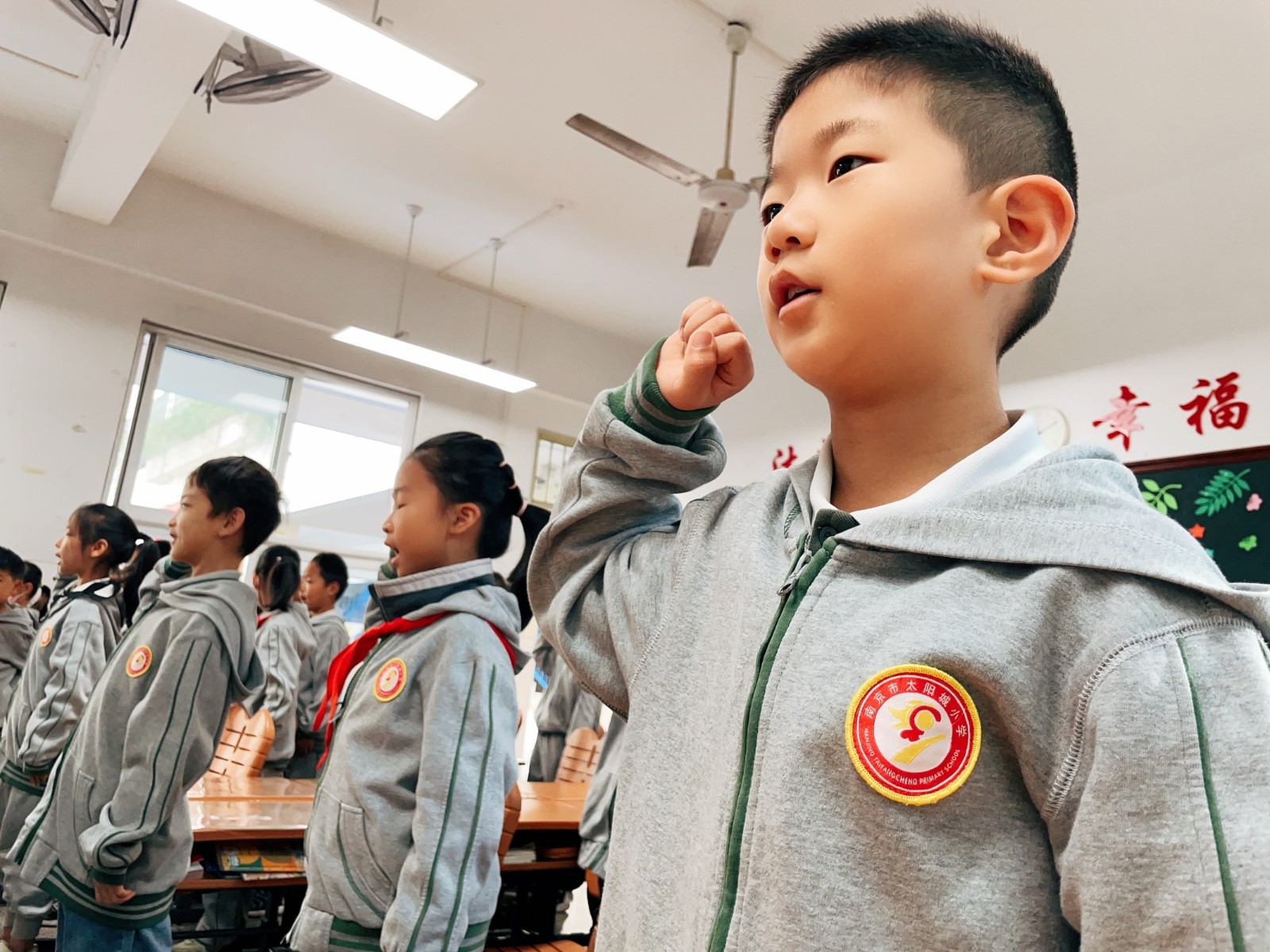 “时刻准备着!”坚定的眼神,铿锵有力的宣誓,流露着他们加入少先队组织的坚定决心。