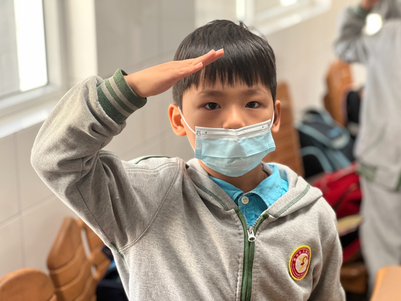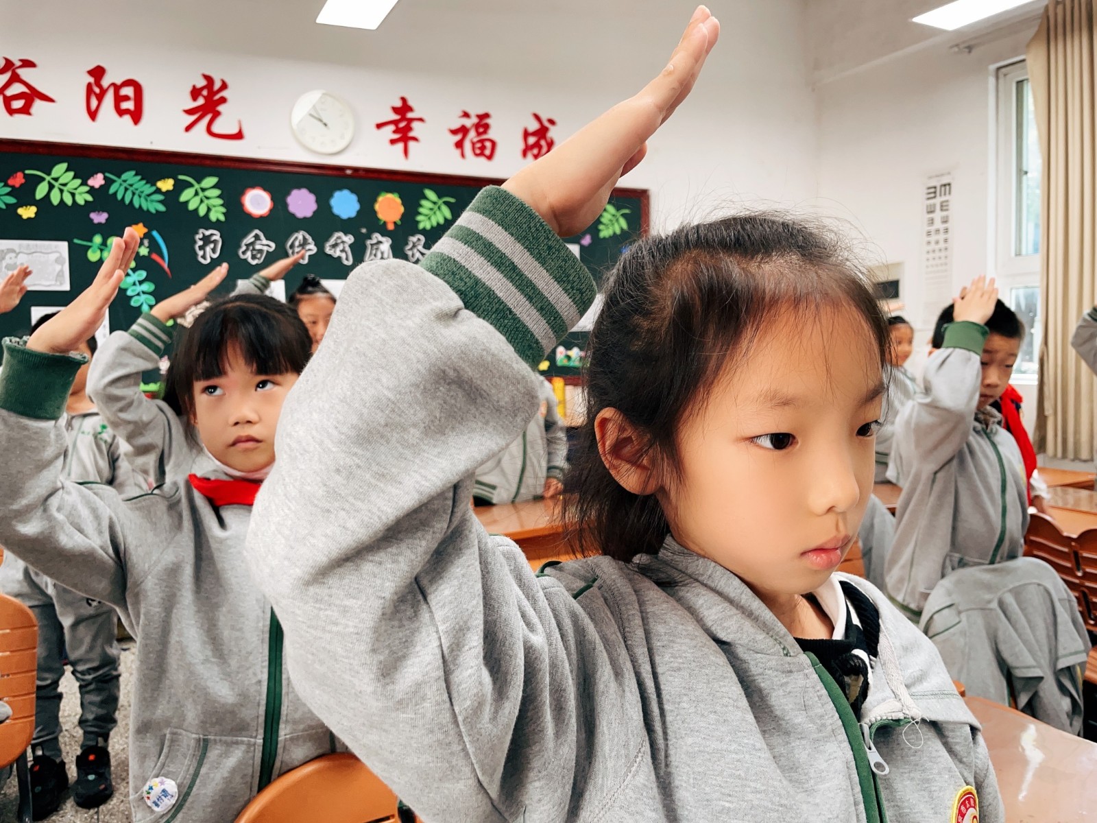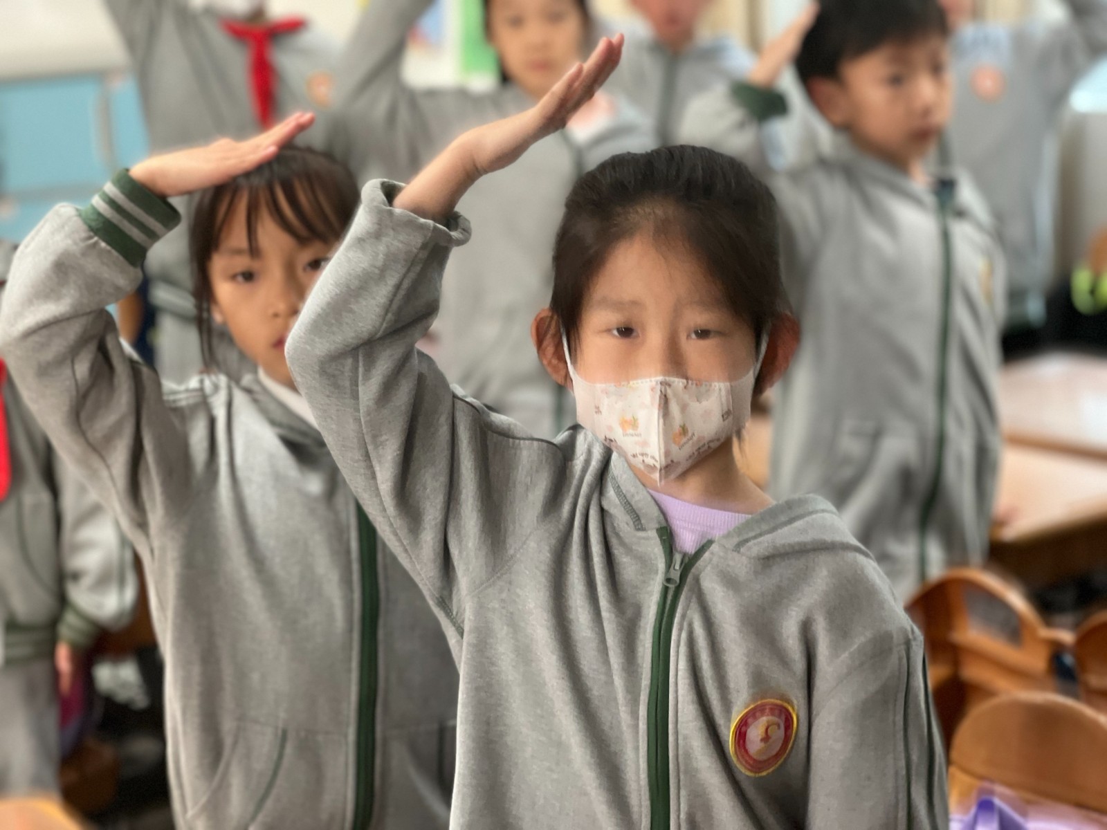 入队前,预备队员们认真学习如何敬队礼。我们的队礼,右手五指并拢,高举头上。它表示人民的利益高于一切。瞧,他们一个个精神饱满,认真学习,努力练习,从此在他们心灵中播下了一颗红色的种子。