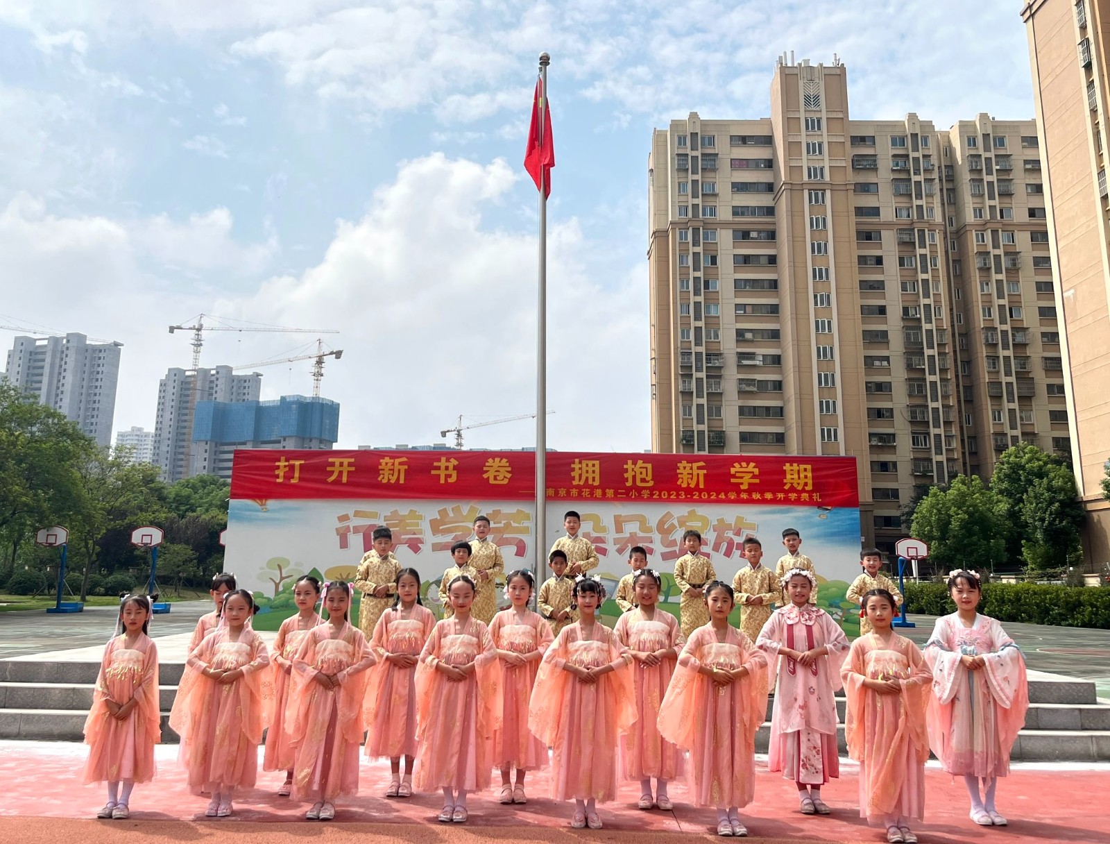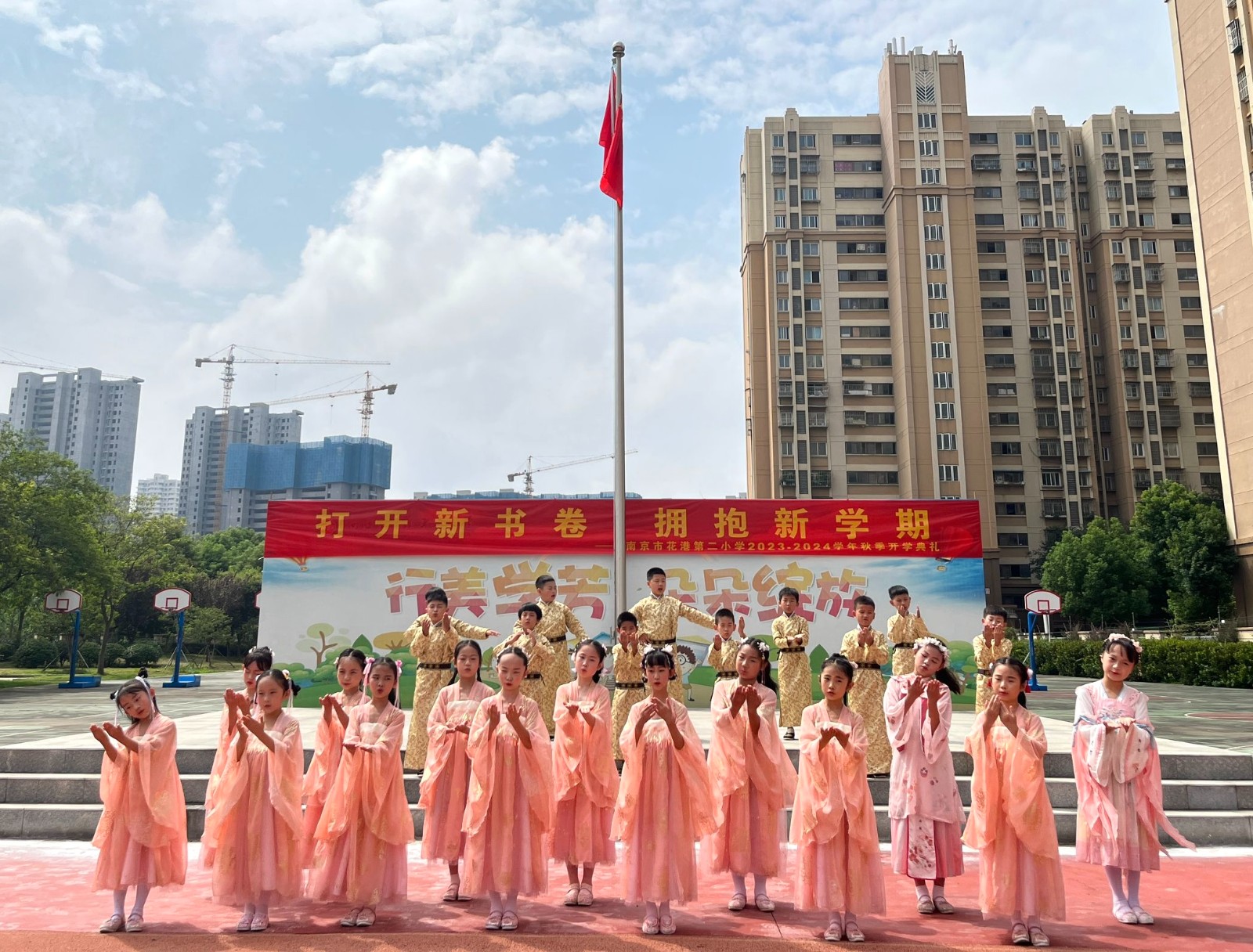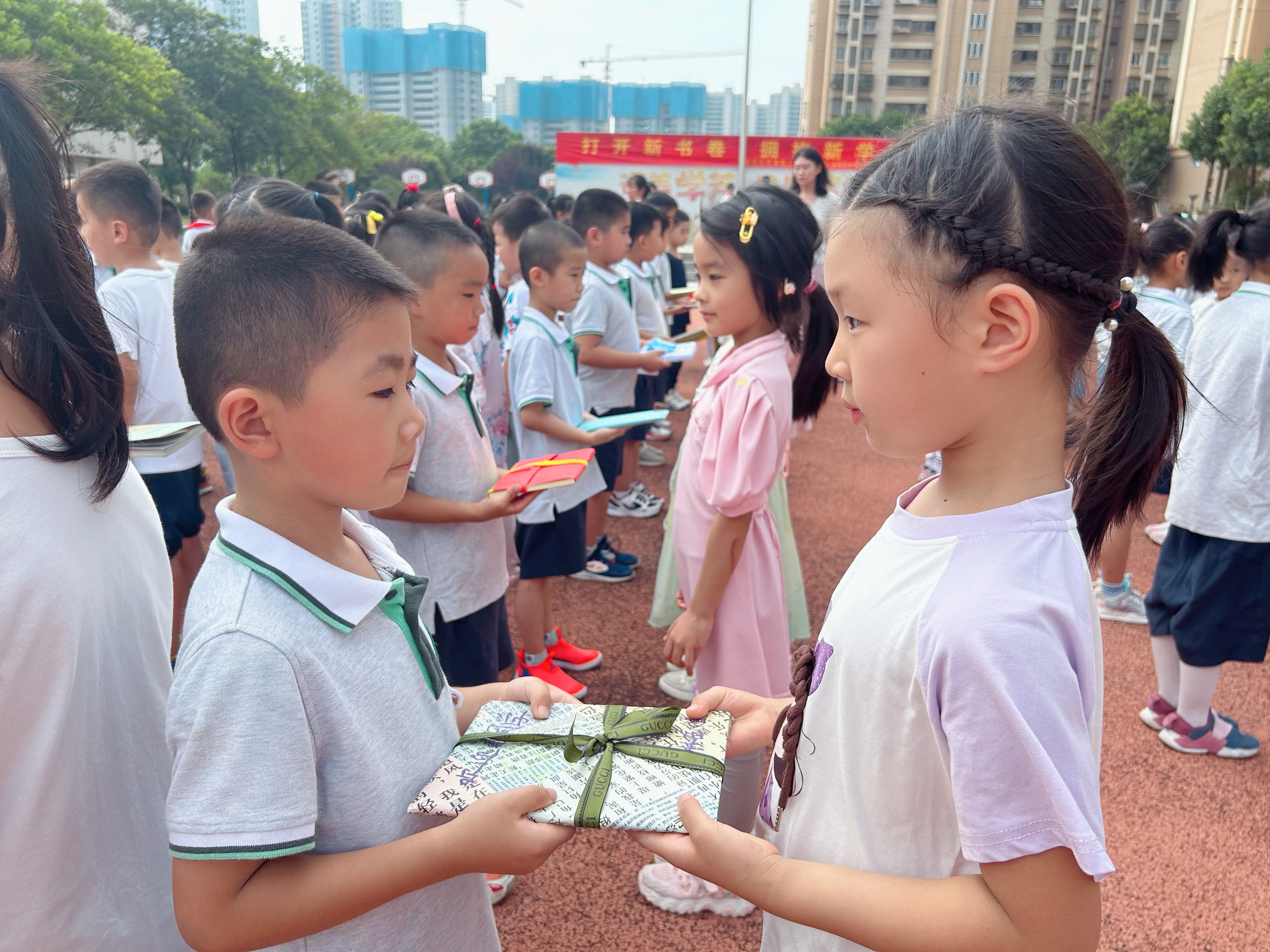 本次开学典礼新增了二年级小朋友向一年级小朋友赠书这一环节。欢迎一年级小朋友加入花港第二小学这一欢乐阳光的大家庭,也希望一年级小朋友能够在书香氛围中茁壮成长。