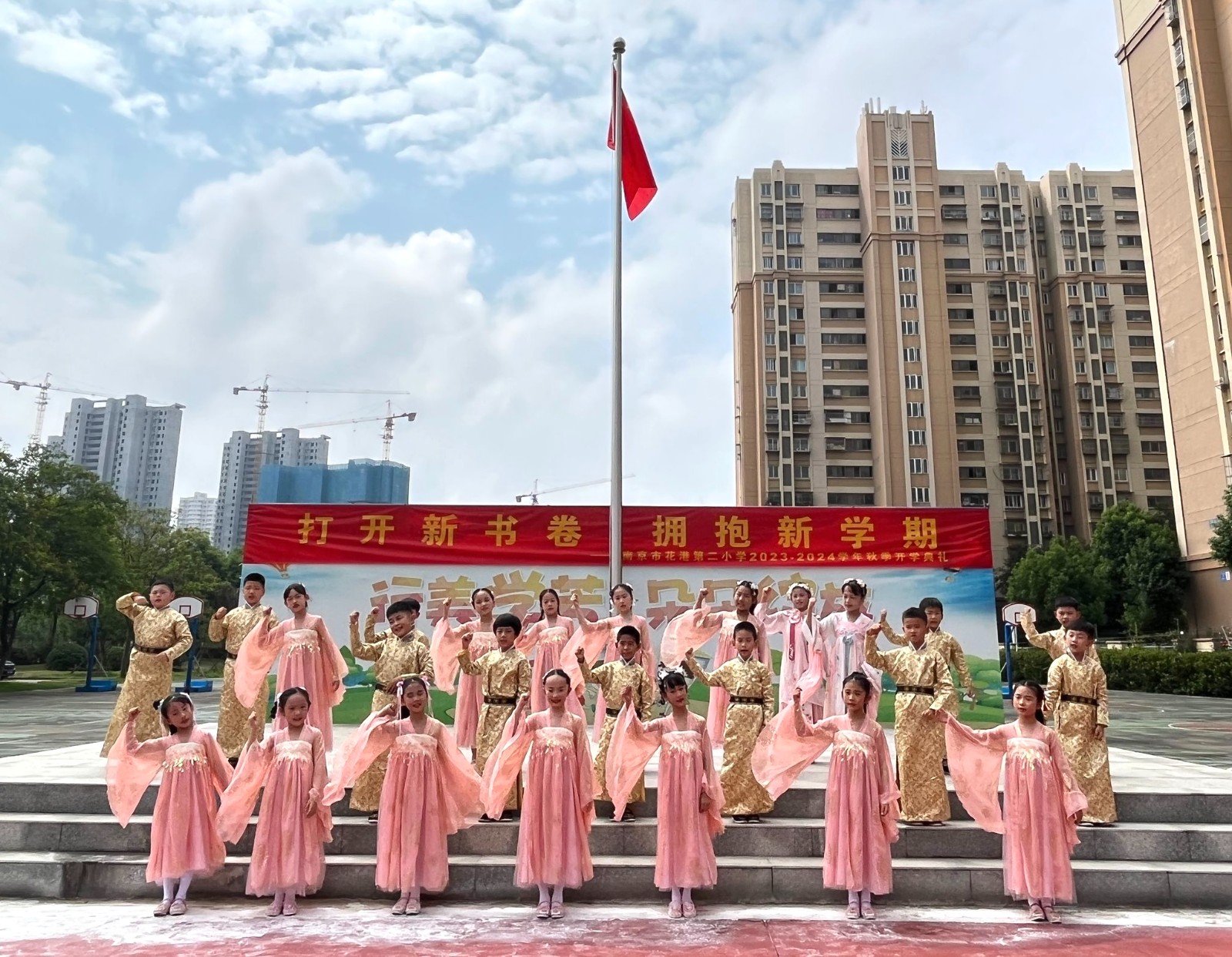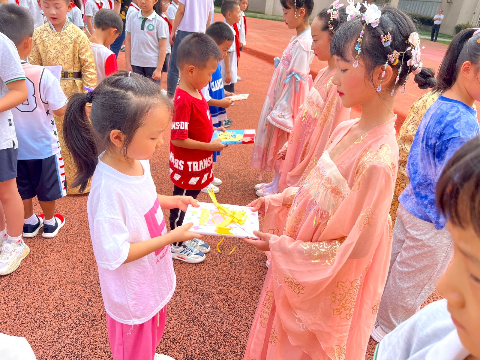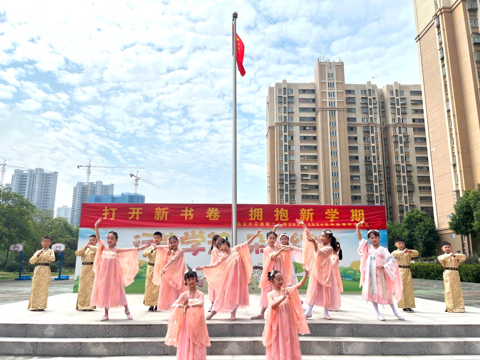 本次开学典礼新增了二年级小朋友向一年级小朋友赠书这一环节。欢迎一年级小朋友加入花港第二小学这一欢乐阳光的大家庭,也希望一年级小朋友能够在书香氛围中茁壮成长。