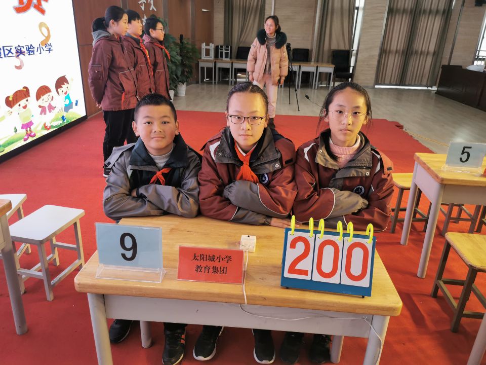 本届大赛,太阳城小学教育集团四个校区经过精心组织、层层选拔,产生一支由12人组成的代表队参加角逐。竺子涵、王雨晗、许淳怡组成的三年级代表队,在首场比赛中拔得头筹,顺利摘夺三年级组一等奖的桂冠;由孙研、张子墨、刘鑫洋组成的四年级代表队在接下来的对抗中不甘示弱,在逆境中拼搏,最终也获得一等奖;顾可、魏俊文、李正祺组成的五年级代表队,一路稳扎稳打,用一道高难度的抢答题,实力满满地锁定一等奖;由刑闵、陈心茹、陈仿彬组成的六年级代表队,虽然在抢答环节失误,屈居三等奖,但是也算拼尽全力,并没有让对手占据太大优势。最终,太阳城小学教育集团的总分位居全区前列,获得团体总分一等奖的好成绩!
