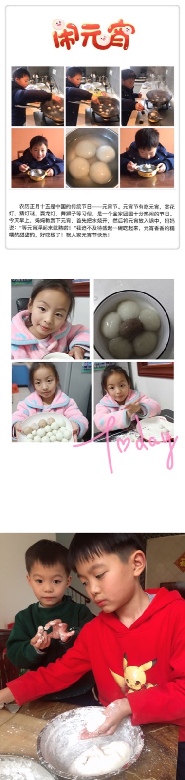活动得到了全校老师、学生和家长的积极响应,同学们在爸爸妈妈的指导下,个个摇身一变,成了“小厨师”。先摊开糯米团子,再包上各种口味的馅料,最后把它揉成圆滚滚的形状,一个漂亮的汤圆就做好了。能够自己亲手制作汤圆,同学们都玩得不亦乐乎,细心的爸爸妈妈们也用镜头记录下这些宝贵的瞬间。