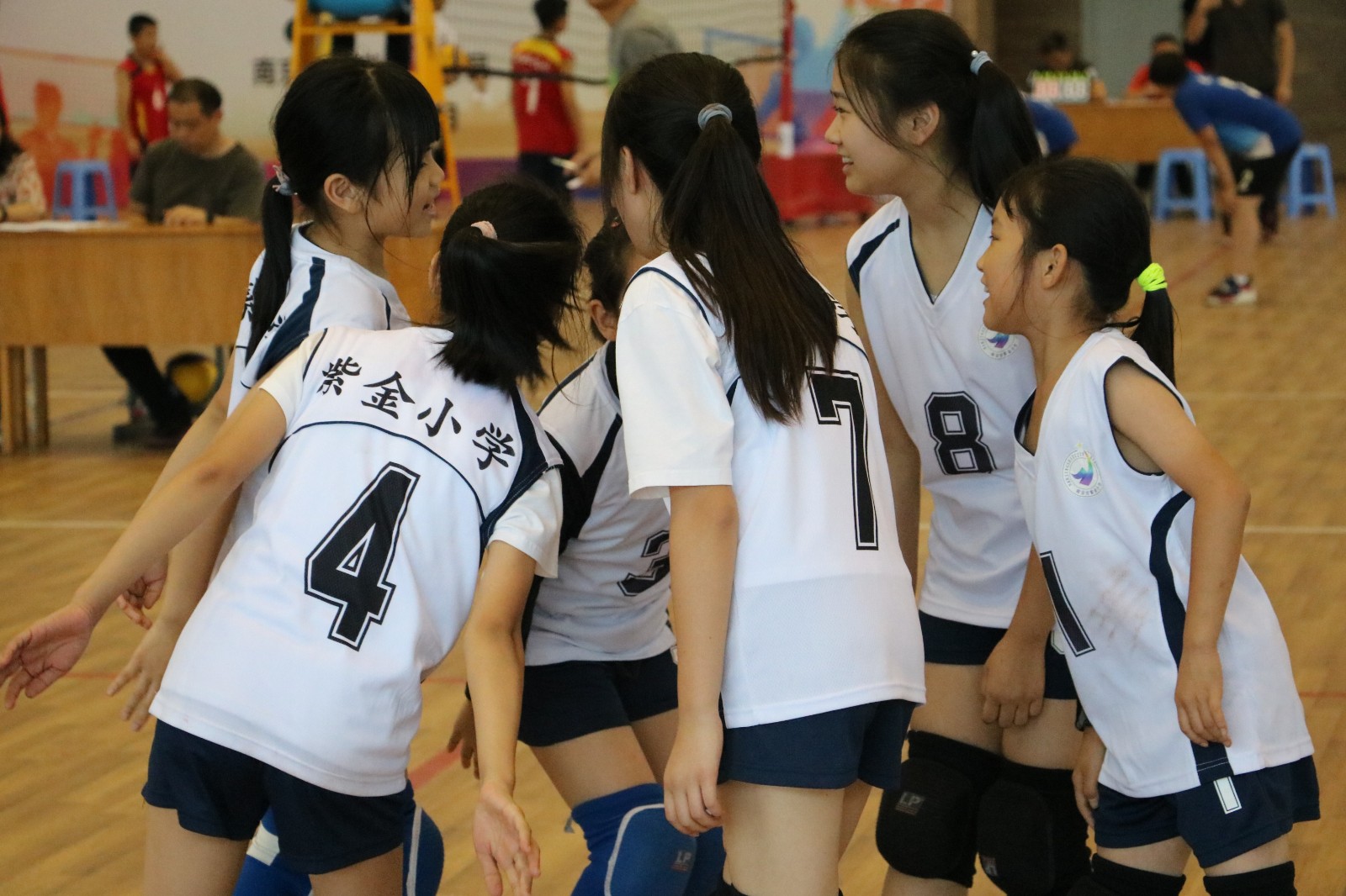 第一天小组赛,紫金小学排球队着装整齐,意气风发。男队首战燕子矶小学,获得大胜;女队首战迈皋桥小学,也毫不逊色,取得了亮眼的成绩。这样的好势头延续了一整天,紫金小学男队和女队经过一天的奋战,双双以小组第一的成绩晋级第二天的比赛。周日,经过三场苦战,女队最终获得二等奖第四名的好成绩,男队获一等奖第一名的成绩。在对战市冠军仙林小学的比赛中,男队以非常微小的差距惜败,获得亚军。但紫金小学在高年级男生人数相当少的基础上组队参赛,并获得这样的好成绩,得到了组委会的极力称赞!